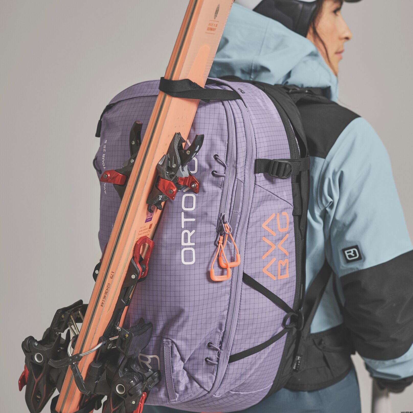 Чантата за безделно пътуване може да се отвори напълно благодарение на периферния цип и е оборудвана с всички функции, от които се нуждаете по време на обиколка: приспособления за ски, сплитборд и въжета, държач за ледена брадва и малко отделение за карта не оставят нищо, което да желаете. Аварийното оборудване може да се прибере в отделно безопасно отделение. Използвахме особено леки, но устойчиви на надраскване материали, за да сведем теглото до минимум.