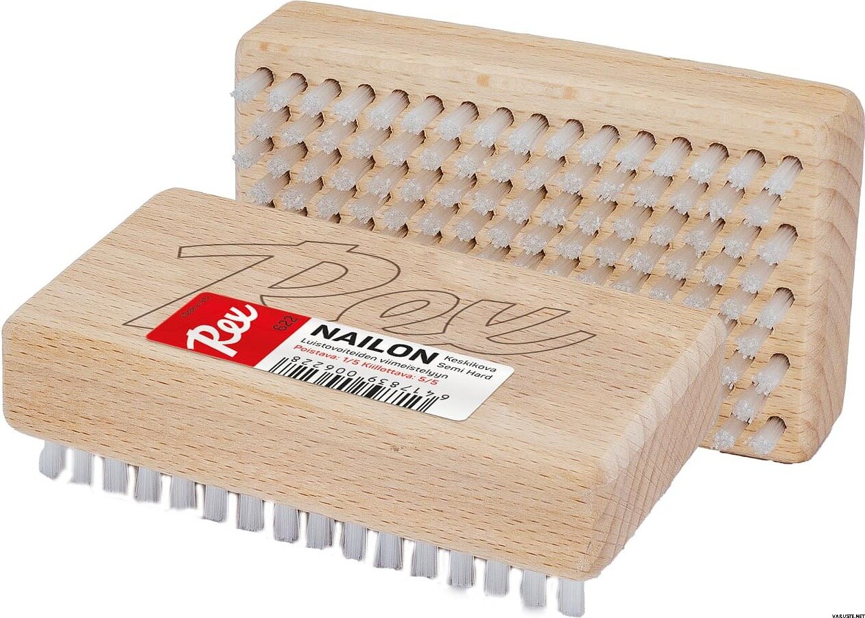 Найлонова четка Rex Nylon Brush, Semi Hard, е основен инструмент за скиори, предназначен да подобри плъзгането на ските. Тази полутвърда найлонова четка е идеална за финално полиране с восък, а също така е подходяща за нанасяне на флуорирани покрития. Препоръчително е да се използват отделни четки за флуорирани и нефлуорирани продукти.