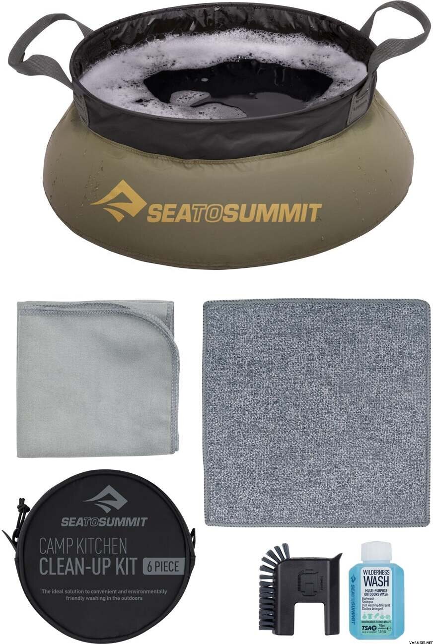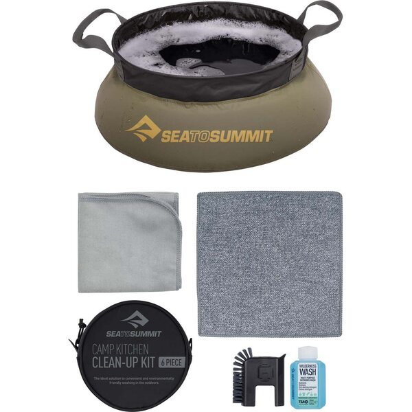 Комплектът за почистване на кухнята на къмпинг Sea to Summit се откроява като компактен и добре организиран начин за миене на съдове в къмпинга с минимални усилия. Тези инструменти за почистване на кухнята на къмпинга съдържат всички необходими неща заедно, така че почистването е бързо на къмпинга, в хижата или по време на пътувания.