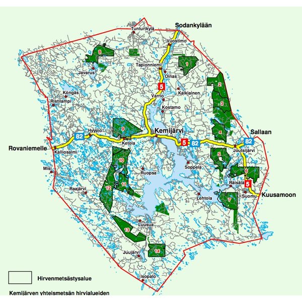 Kemijärven yhteismetsällä on n. 42 300 hehtaaria metsästysmaita. Metsästysluvilla on mahdollista metsästää kaikilla yhteismetsän alueilla pois lukien rauhoitusalueet.