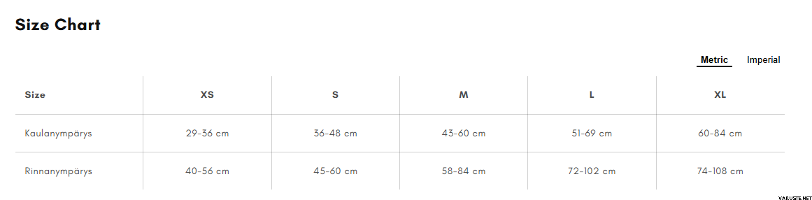 | XS | 29-36 cm | 40-56 cm |
