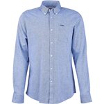 Soft linen/cotton blend long sleeved tailored shirt in casual styling. Single 21's, plain weave, enzyme finish. Barbour and Shield branded label to left pocket.