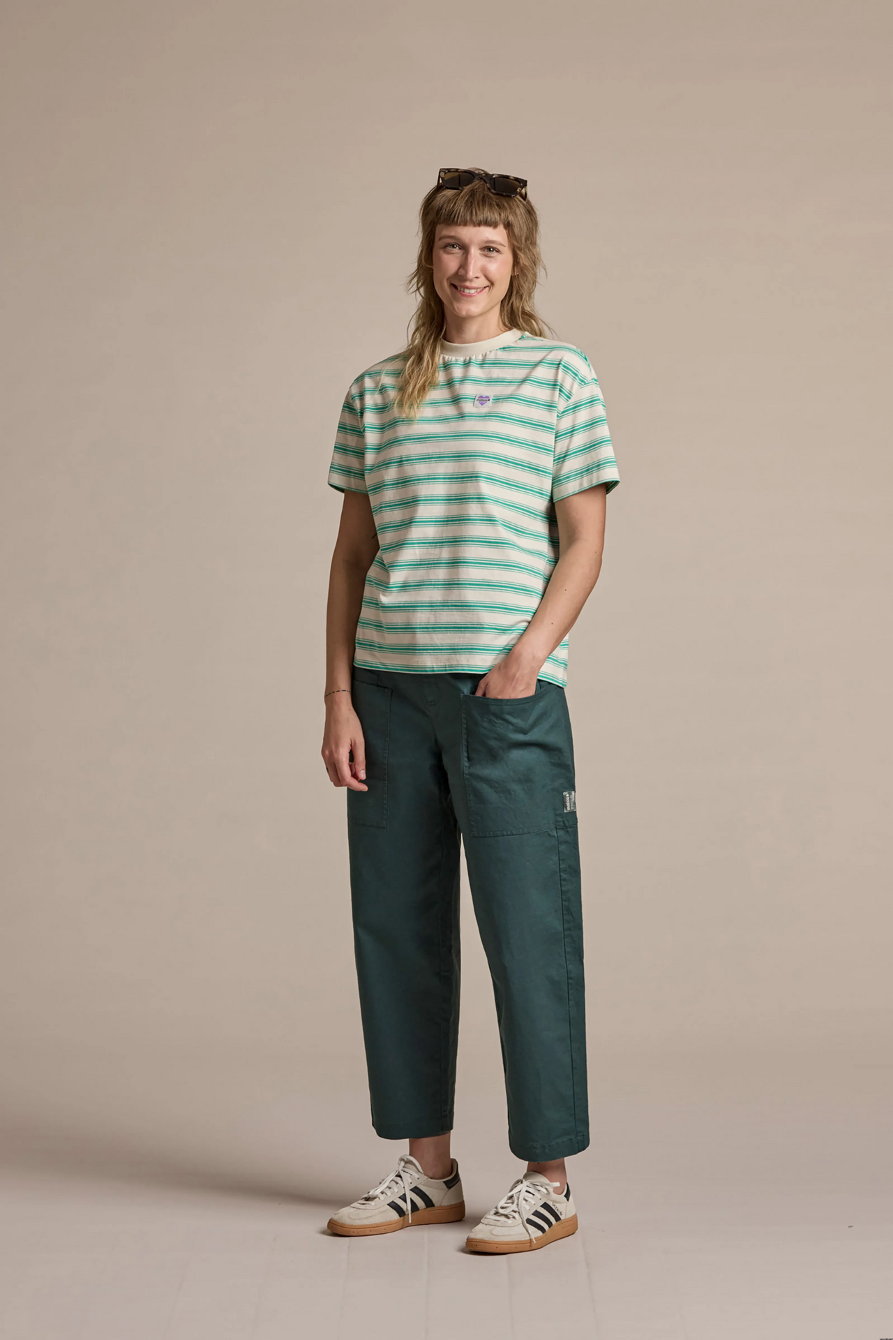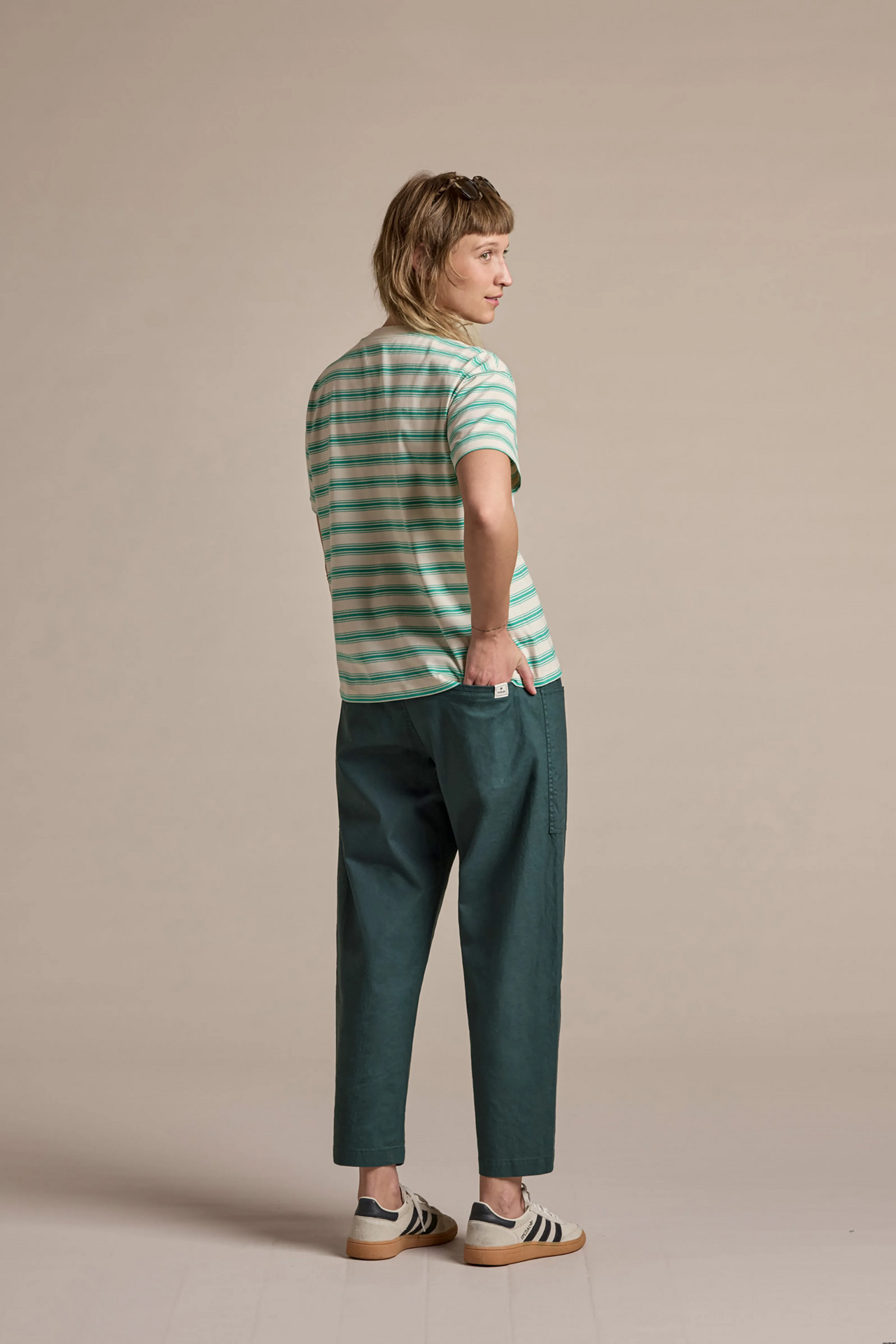 Hlavní materiál: 54% konopí, 44% bavlna, 2% elastan
