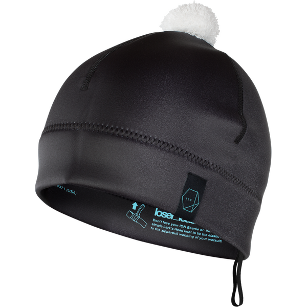 • Elasticated loop on the inside of the beanie: Keep your ION Beanie safe on the water! Use a simple Lark‘s Head knot to tie the Loser_Leash to the zipper pull webbing of your wetsuit
