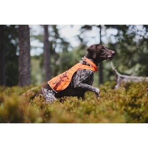 Non-stop Dogwear Camo Cover je nezbytná vesta pro viditelnost navržená tak, aby byl váš pes snadno rozpoznatelný ve volné přírodě. Jeho zářivá oranžová barva, reflexní potisky a 3M reflektory zajistí, že váš mazlíček vynikne, zatímco maskovací vzor mu pomáhá hladce zapadnout do přirozeného prostředí z pohledu divoké zvěře. Tato vesta, vyrobená z odolné ripstopové tkaniny, si zachovává svůj tvar díky bočním prošitým žebrům. Vesta je zajištěna klipem pod bříškem, zastrčená v kapse pod barevným fixem, který zabraňuje zadrhávání o větve, a otvor na krk lze zezadu upravit tak, aby přiléhal.