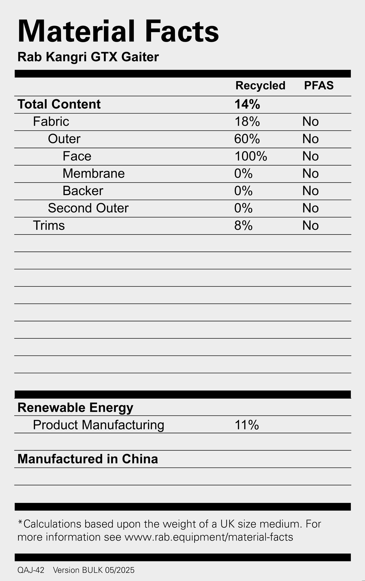 Návleky Rab Kangri GTX nabízejí výjimečnou ochranu pro horská dobrodružství a kombinují odolnost s vynikající prodyšností. Tyto návleky jsou ideální pro horskou turistiku a trekking a zajišťují, že vaše nohy zůstanou v suchu a pohodlí. Jsou vyrobeny z třívrstvé technologie Gore-Tex Performance Product Technology a membrány ePE a poskytují robustní ochranu před deštěm, kameny a mačkami. Snadno se připínají a sundávají a bezpečně padnou na trekingové nebo horolezecké boty, což z nich dělá nezbytnost pro každého outdoorového nadšence.