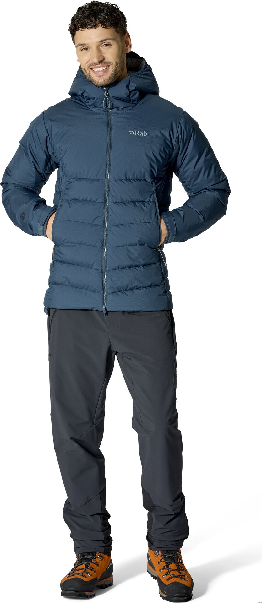Pánská péřová bunda Rab Infinity Windstopper Hoody je odolná pánská péřová bunda určená pro náročné alpské lezení a větrné vrcholky. Bunda kombinuje teplo a odolnost proti větru, což z ní činí vynikající volbu pro lezení a alpinismus. Péřová bunda obsahuje pokročilé technologie, jako je vysoce kvalitní evropské husí peří s hustotou 800FP a tkanina Gore-Tex Labs Windstopper. Bunda je navržena s ohledem na mobilitu a odolnost, takže se skvěle hodí do extrémních podmínek.