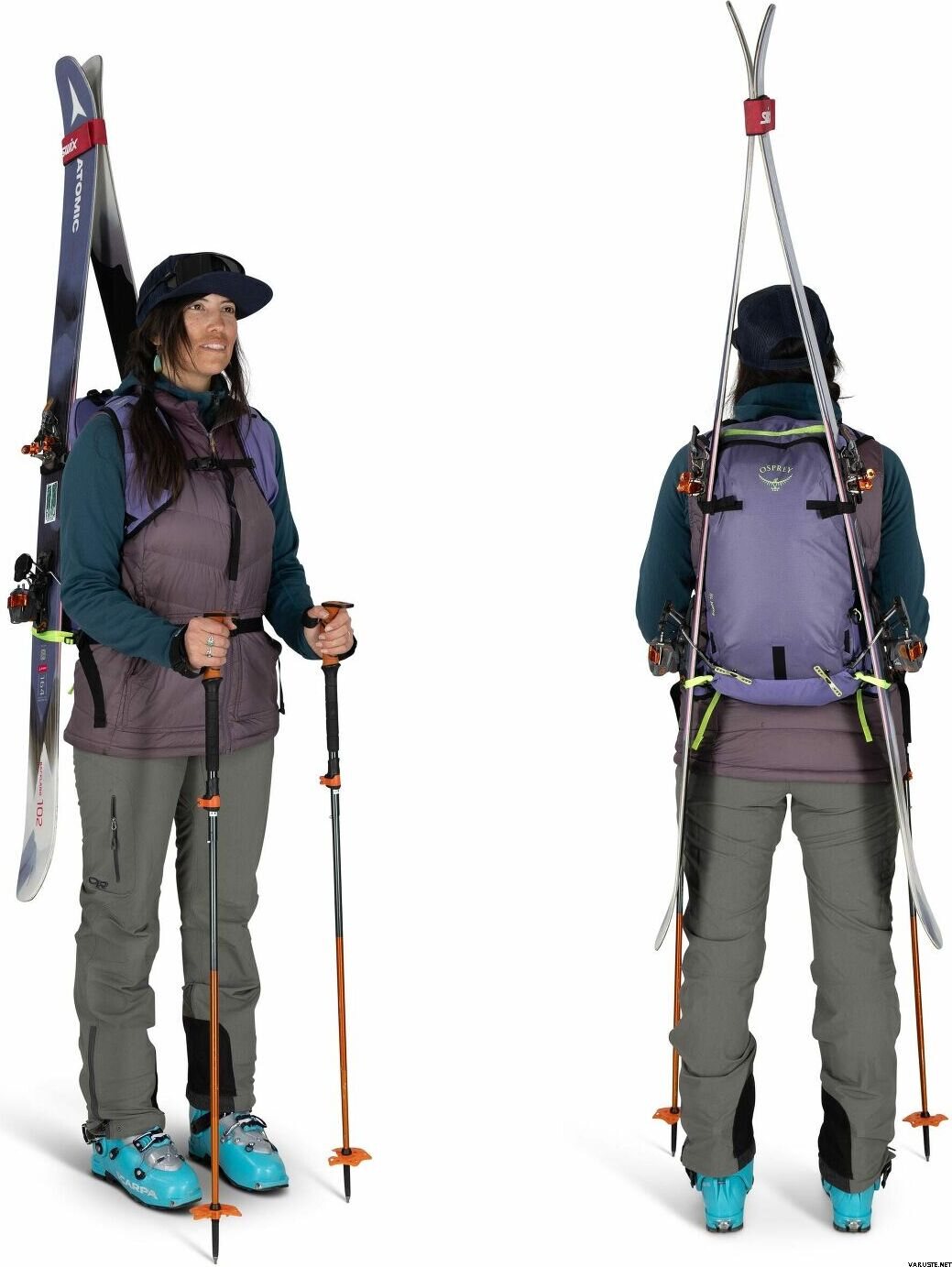 Lyžařský batoh Osprey Firn 18 je navržen pro ty, kteří zdolávají strmé a rychlé stoupání. Je ideální pro sportovce, kteří potřebují rychle přecházet mezi aktivitami. Nabízí střih vesty a praktický systém Ski Lasso, který umožňuje uložení lyží bez nutnosti sundávat batoh. Jeho konstrukce zahrnuje zádový panel proti sněhu a kapsu na mačky s přímým přístupem, takže je vhodný pro alpská dobrodružství. Firn 18 je vyroben z odolné tkaniny s karbonátovým povlakem a má úvazek přiléhající k tělu s kapsami na nezbytnosti, jako je jídlo a technologie. Jako produkt Bluesign klade důraz na udržitelnost a odpovědnost za životní prostředí.