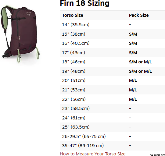 Velikost S/M: 49 x 29 x 24 cm, objem 18 L