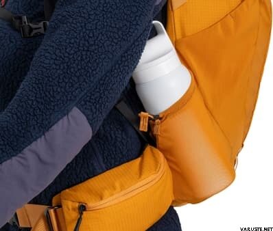 - Velké elastické síťované kapsy na přední a boční straně pro rychlé uložení vybavení, lahví nebo vlhkého oblečení