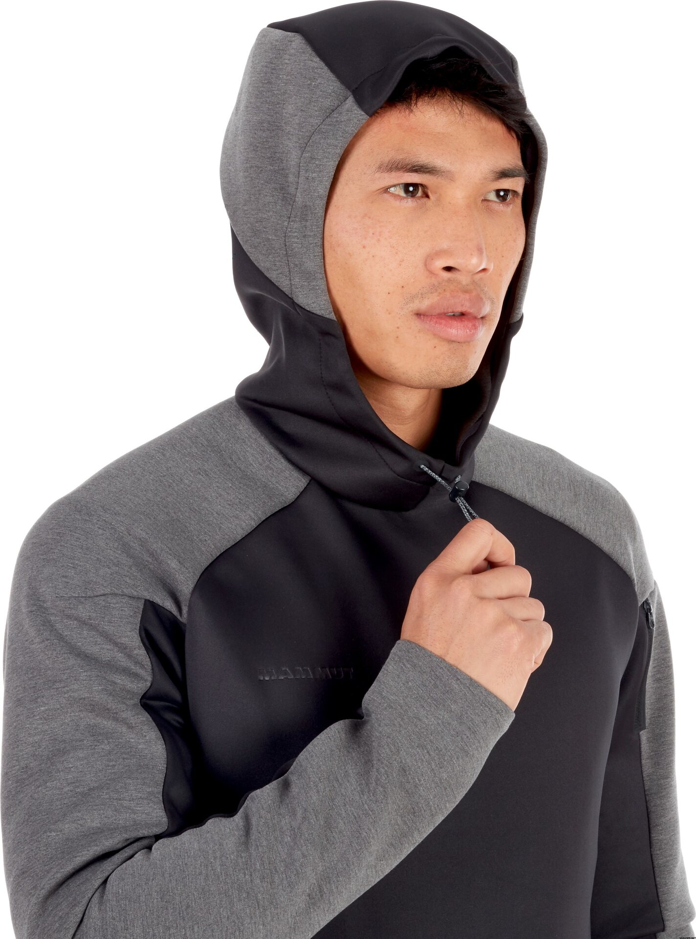Popis produktuPractical for climbing and bouldering: the Mammut Logo ML Hoody Men mid-layer is made from a stretchable double-face material for greater freedom of movement. It features a practical small pocket for a key as well as a kangaroo pocket. On the back is a 3D logo.
