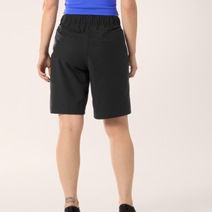 The Arc'teryx Kragg Cotton Short 9" Womens is a versatile climber's short designed for gym sessions, bouldering, crag adventures, and multipitch climbs. Crafted from a durable blend of cotton and nylon, these shorts offer a four-way stretch for enhanced mobility and comfort. The FC0 DWR finish ensures moisture resistance, making them suitable for various outdoor conditions.