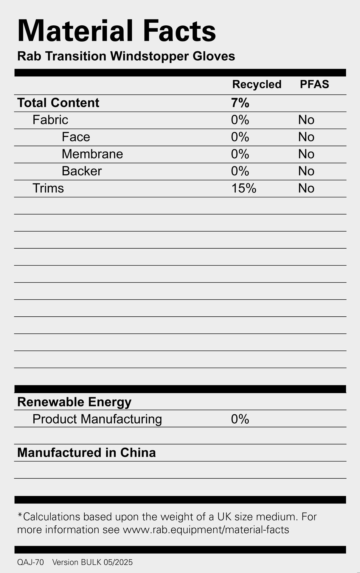 Rab Transition Windstopper-handsker tilbyder exceptionel beskyttelse mod kulde og vind, hvilket gør dem perfekte til vintervandringer og bjergløb. Disse lette handsker er designet til at give varme uden at tilføje fylde, hvilket sikrer komfort og fingerfærdighed. De er ideelle til aktiviteter som vandreture i bjergene, løb og trekking, og de har et åndbart design, der tillader fugt at undslippe, samtidig med at de holder vinden på afstand. De er konstrueret med Windstopper-produkter fra Gore-Tex Labs og er perfekte til hurtige eventyr under udfordrende forhold.