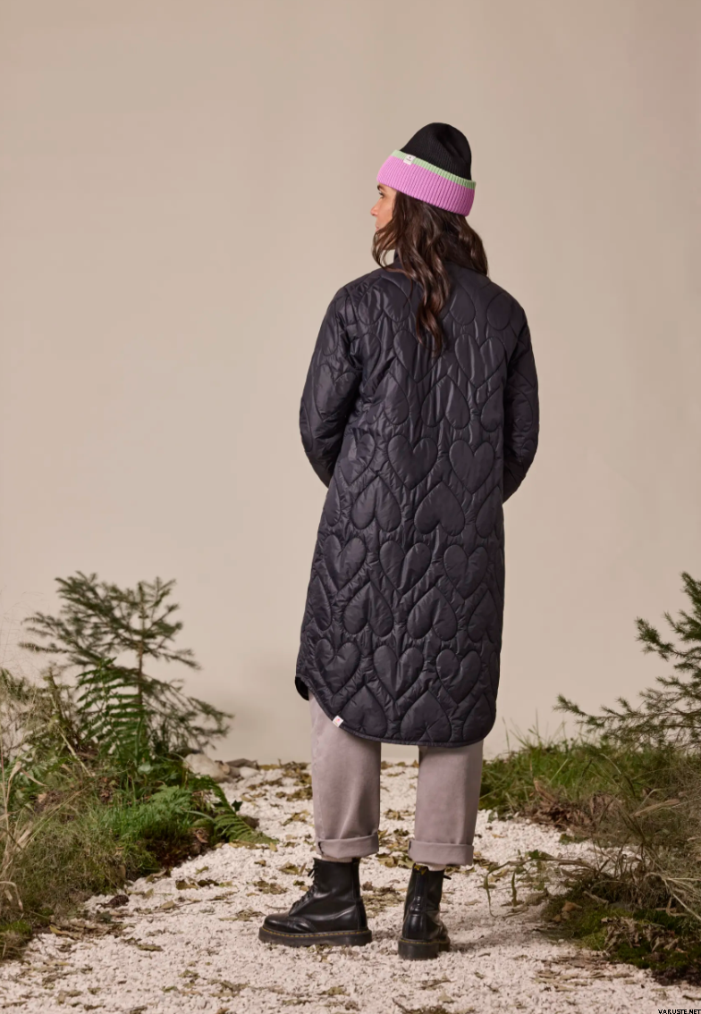 Maloja SmetindenM. Urban Puffer Coat er en stilfuld syntetisk jakke, der er perfekt til lag-på-lag i køligt vejr eller alene i mildere forhold. Dens design inkluderer en høj, opretstående krave, en gennemgående trykknaplukning og to rummelige påsyede lommer, der blander urban æstetik med avanceret funktionalitet. Et unikt aspekt ved denne frakke er det hjerteformede broderi, der sikrer polstringen. Bluesign-produktcertificeringen sikrer miljøansvarlig produktion og sikker forarbejdning af både syntetiske og naturlige fibre.