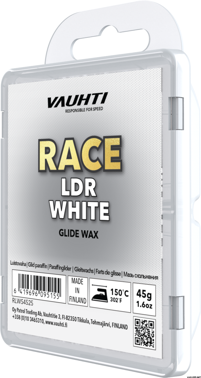Vauhti Race LDR White 45g Glide Wax er en førsteklasses glidevoks designet til dem, der prioriterer lang levetid på deres skivoksning. Denne glidevoks er omhyggeligt formuleret til at skabe en optimal binding mellem skibasen og eventuel yderligere glidevoks, der påføres ovenpå. Den forbedrer vokslagets holdbarhed og kan effektivt bruges alene under varierende sne- og vejrforhold.