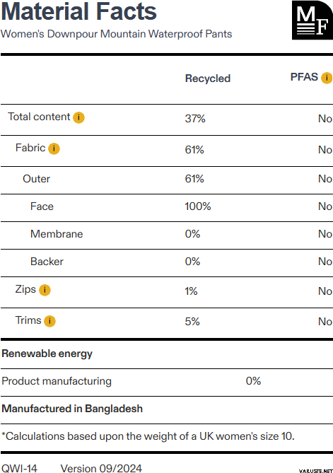 Hovedstof: 40D Pertex Shield 2,5-lags konstruktion med fluorcarbonfri DWR
