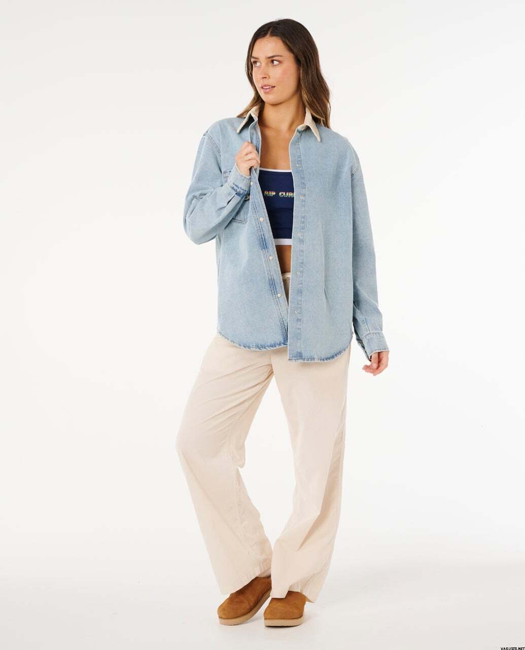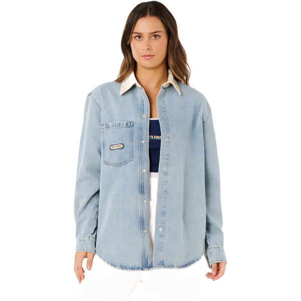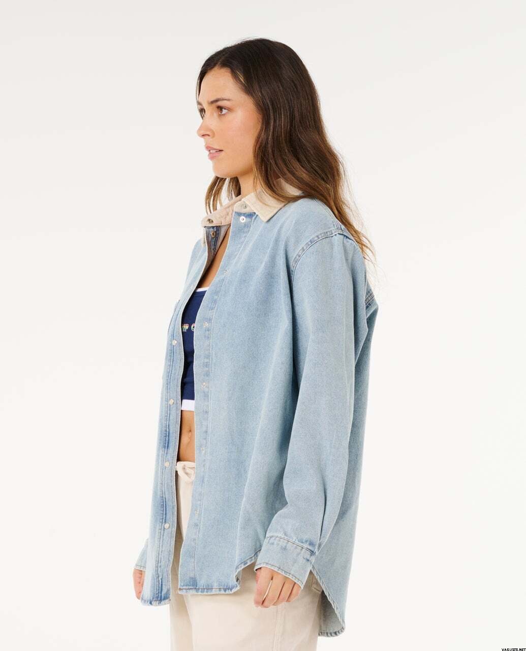 Rip Curl Surf Side Relaxed Denim Shirt Womens giver et let, slidt look med stone wash denim for en blødere, slidt fornemmelse fra dag ét. Denne dameskjorte kan bruges glat over badetøj til stranddage eller som et let yderstykke, når kysten bliver køligere. Lange ærmer og et afslappet denimdesign gør den til et pålideligt valg til rejser, bybrug og afslappede aftener.