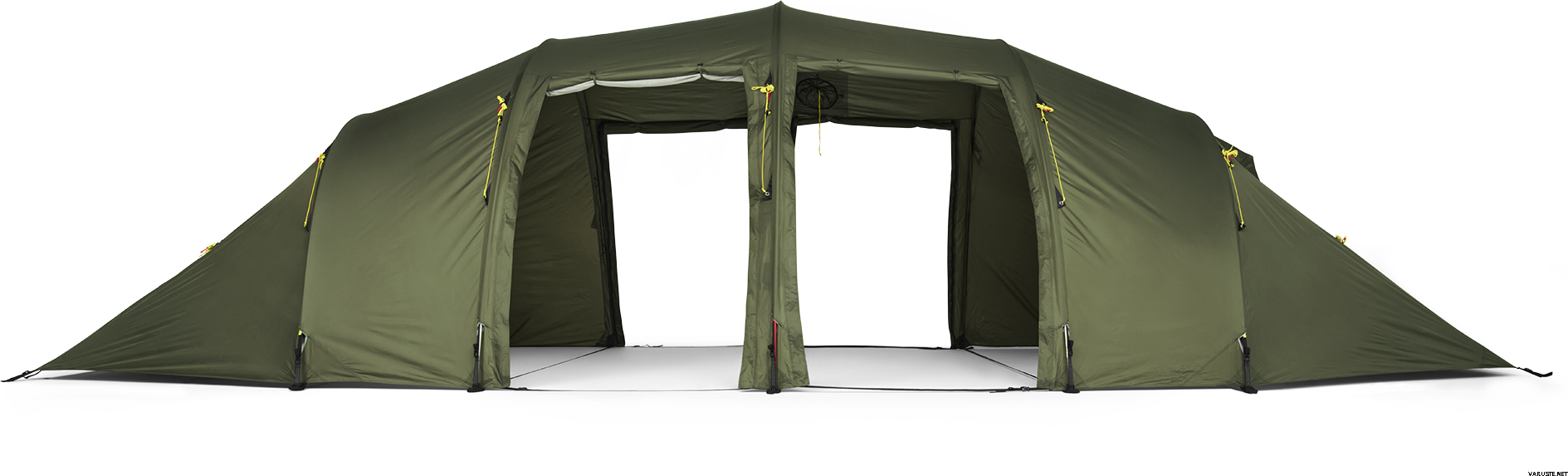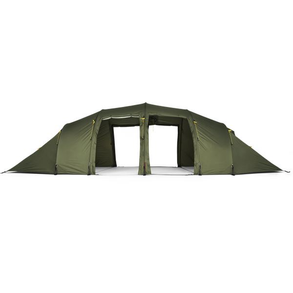 Vallhall er ideel til store familier eller som basecamp telt for større grupper. Teltet har en indvendig højde på 180 cm, hvilket gør det til et meget behageligt telt at være i. Det har seks indgange og to af dem har myggenet, som sammen med justerbare udluftninger sikrer et godt indeklima. Det er også muligt at lave alle lågerne til en baldakin-løsning med 170 cm stænger. Den er kompatibel med vores Helsport Lavvu Komfur, eller endda et lille bål, da stoffet har en brandhæmmende behandling.