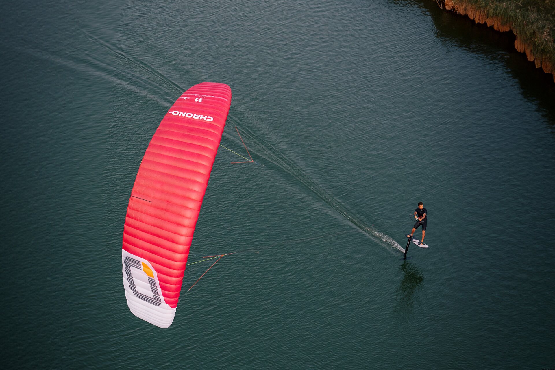 When riding a hydrofoil, the Chrono V5 feels like you have your hands on the wheel of a high-performance sports car; the harder you push, the more it delivers. Whether carving sharp angles upwind or streaking off downwind at high speed, the kite offers remarkable acceleration and agility.