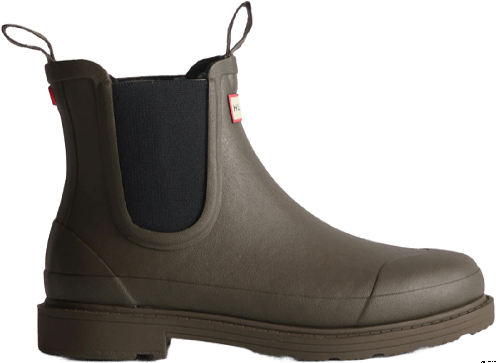 Der Damen-Chelsea-Stiefel Elements bietet eine gelungene Kombination aus Wärme, Komfort und Funktionalität. Gefertigt aus einer Mischung aus Gummi und Elastik, garantiert dieser Stiefel Langlebigkeit und eine flexible Passform. Das Futter aus Polyester-Kunstfell isoliert hervorragend bei Kälte, während die griffige Gummisohle im Commando-Stil zuverlässigen Halt auf unterschiedlichem Terrain bietet. Dank des elastischen Einsatzes und der Anziehschlaufe lässt sich dieser wasserdichte Stiefel leicht anziehen und verkörpert den klassischen Hunter-Stil.