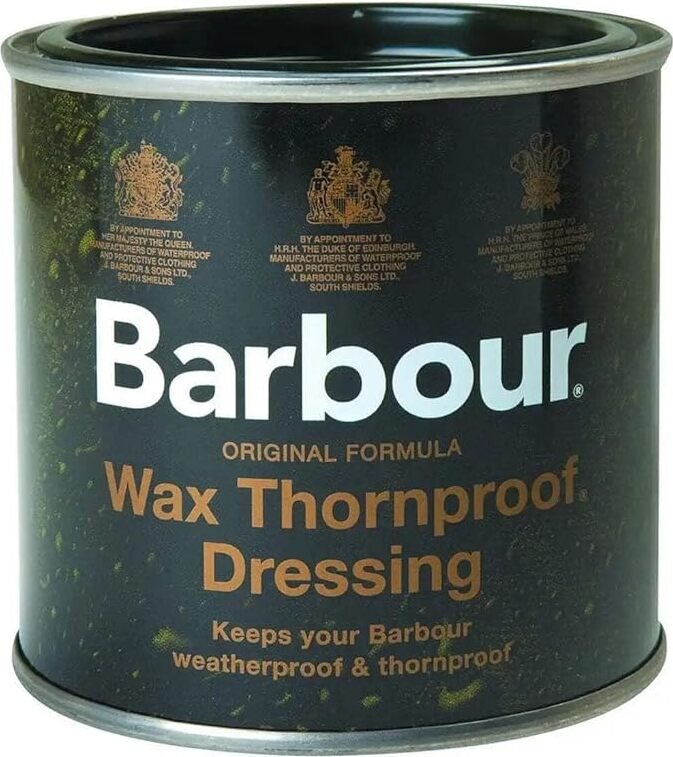 Halten Sie Ihre gewachste Barbour-Ausrüstung mit Barbour Thornproof Dressing wasserdicht und robust. Die 200-ml-Dose reicht für die vollständige Behandlung eines langen Mantels oder zweier Jacken.