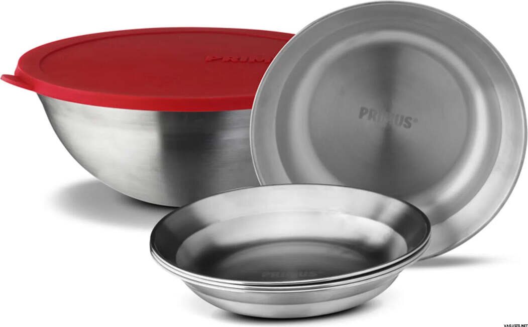Το κιτ σερβιρίσματος Primus CampFire προσφέρει μια συμπαγή, εντοιχιζόμενη διάταξη που διευκολύνει το σερβίρισμα και τη συσκευασία των γευμάτων σε εξωτερικούς χώρους. Αυτά τα κιτ σερβιρίσματος συνδυάζουν ένα μεγάλο μπολ με τέσσερα ασορτί πιάτα, όλα σχεδιασμένα για να αποθηκεύονται τακτοποιημένα μαζί για ταξίδια. Το μπολ από ανοξείδωτο ατσάλι είναι κατάλληλο για την προετοιμασία, το σερβίρισμα ή τη συγκράτηση των περισσευμάτων φαγητού, ενώ το καπάκι σιλικόνης βοηθά στη συγκράτηση του ζεστού ή κρύου περιεχομένου. Με όλα τα υλικά να στοιβάζονται σε ένα τακτοποιημένο πακέτο, είναι κατάλληλο για κουζίνες κατασκήνωσης όπου ο χώρος έχει σημασία.