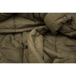 Αυτός ο χειμερινός υπνόσακος υψηλής απόδοσης σχεδιάστηκε ειδικά για στρατιωτική χρήση. Διαθέτει γενναιόδωρους σωλήνες ρεύματος στο εσωτερικό του φερμουάρ για την αποφυγή απώλειας θερμότητας εκεί. Αντικολλητική ταινία κατά μήκος του φερμουάρ και ένα προστατευτικό πτερύγιο στο εξωτερικό κρατούν τον αέρα και την υγρασία. Το SURVIVAL ONE έχει διαφορική κοπή που σημαίνει ότι κάθε διαδοχική μονωτική στρώση κόβεται πιο γενναιόδωρα. Αυτό εξασφαλίζει τη μεγαλύτερη δυνατή σοφίτα σε όλους τους χώρους και σε κάθε θέση ύπνου. Η κίνηση μέσα στον υπνόσακο δημιουργεί σημεία πίεσης αλλά με το διαφορικό μας κόψιμο συμπιέζεται μόνο το πιο εσωτερικό στρώμα. Ανοίγοντας το φερμουάρ στο κάτω μέρος, μπορείτε να βγάλετε τα πόδια σας αν θέλετε να βγείτε έξω. Μπορείτε να δέσετε το άκρο του ποδιού έτσι ώστε να μπορείτε να περπατάτε και ακόμη και να φοράτε την τσάντα σαν παλτό. Τα μανίκια αποθηκεύονται μεταξύ των στρώσεων μόνωσης.