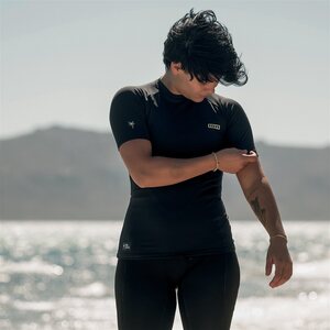 Experience sun-soaked adventures with confidence in the Women's Short Sleeve Rashguard, offering lightweight UV protection in a snug and flexible design. Crafted from recycled materials, this timeless piece features a chic back print for added style. Designed with raglan-style sleeves, ION've minimized seams in the shoulder area to enhance overall comfort during wear. Plus, the slip loop feature ensures effortless connection to boardshorts, allowing for seamless rides on the water.