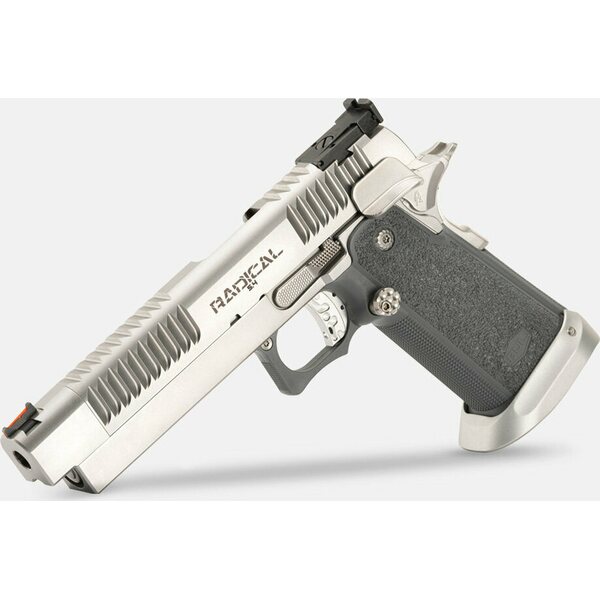 We pushed the boundaries as much as possible, and managed to fit a 5.4” barrel into the Standard division box. Introducing The Radical 5.4”, the evolution of our SAS2 family. Built with a sight block that is made with the barrel as one piece, providing the shooter the longest sight radius possible while adding weight up front for perfect balance and quick sight return. Featuring our famous “Saw” serrations for quick slide manipulation, a crisp light trigger and a brass magwell, The radical comes loaded with all you need to get that extra edge of performance over the competition.