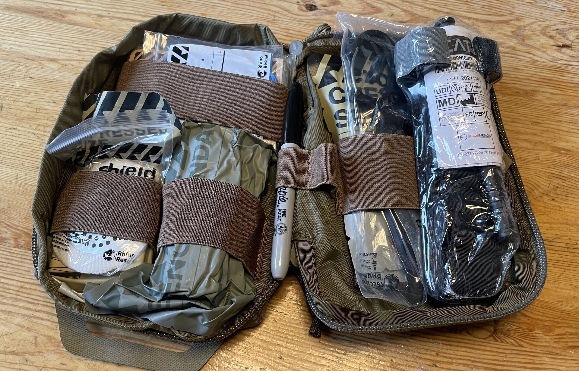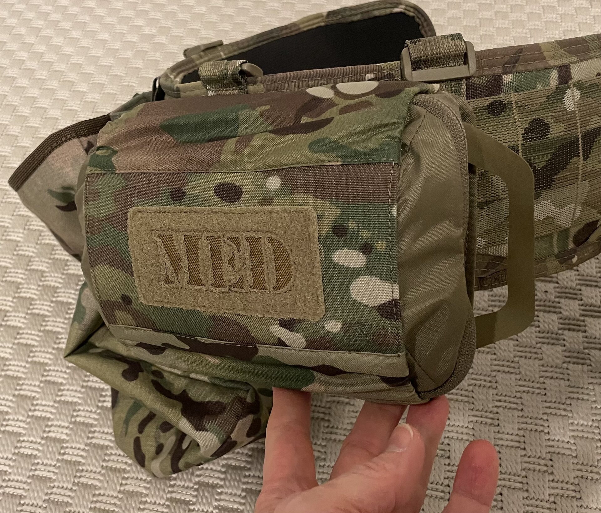 A good ifak pouch, you can put almost everything in there! I have two chest seals, one Israeli bandage 4cm, medical tape, gauze, two bandages, gloves, sharpies and some other items as well. The only cons are, it’s difficult to put the interior pouch back in when you use it ( you need to take the belt off to put it back in, if is packed enough) and can’t put a tourniquet around it ( you can put one inside if you want, but I prefer outside suspended) Other wise, it’s a very good ifak pouch, can hold a lot of medical material inside and it’s good fabrication