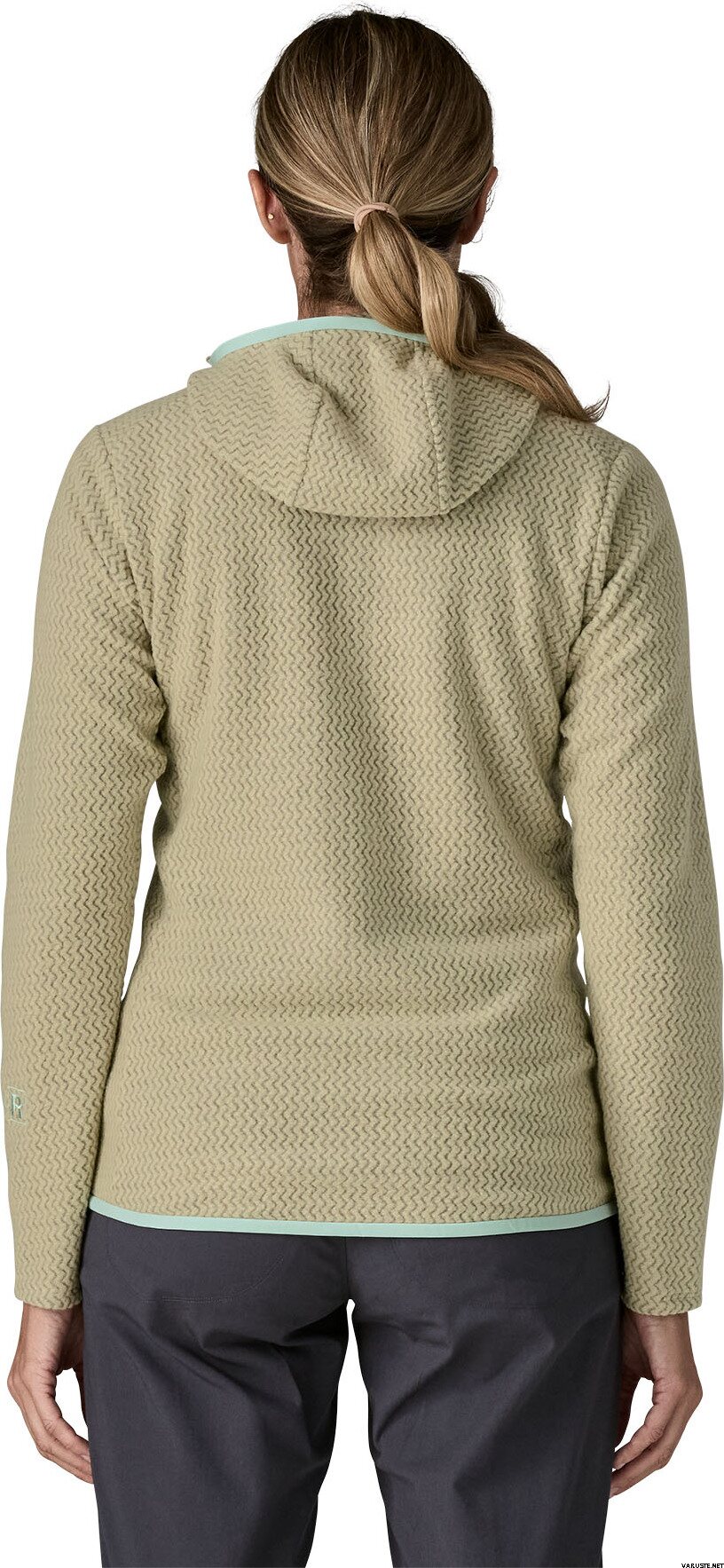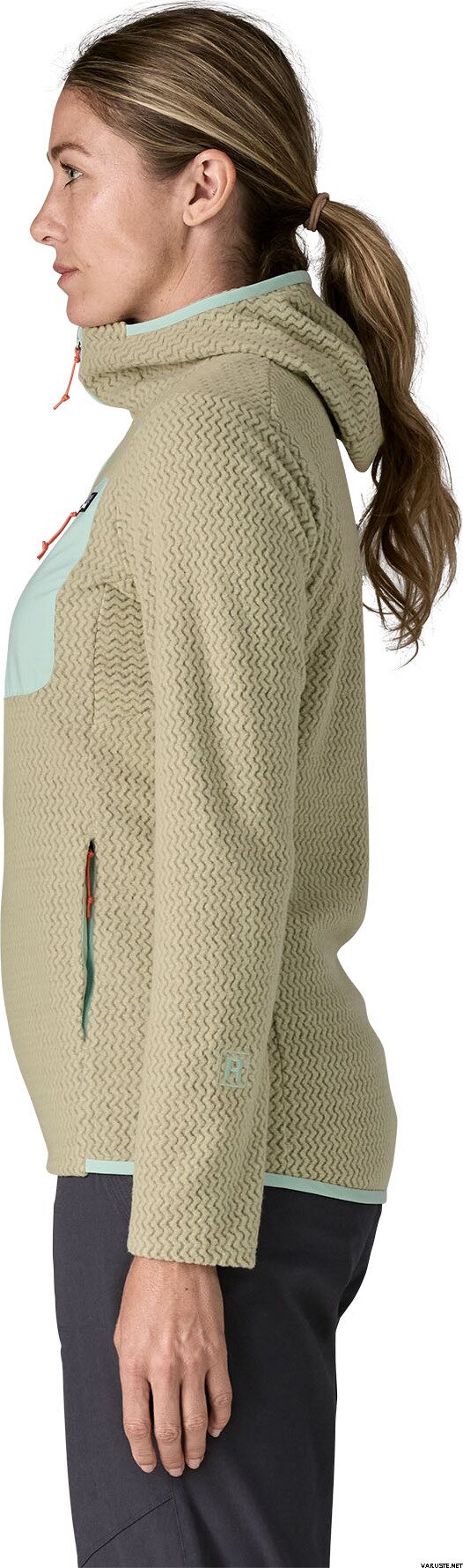 - 100% recycled polyester jacquard fleece with hollow-core yarns features a unique zigzag texture that wicks moisture, dries fast and is highly breathable for high-output activities