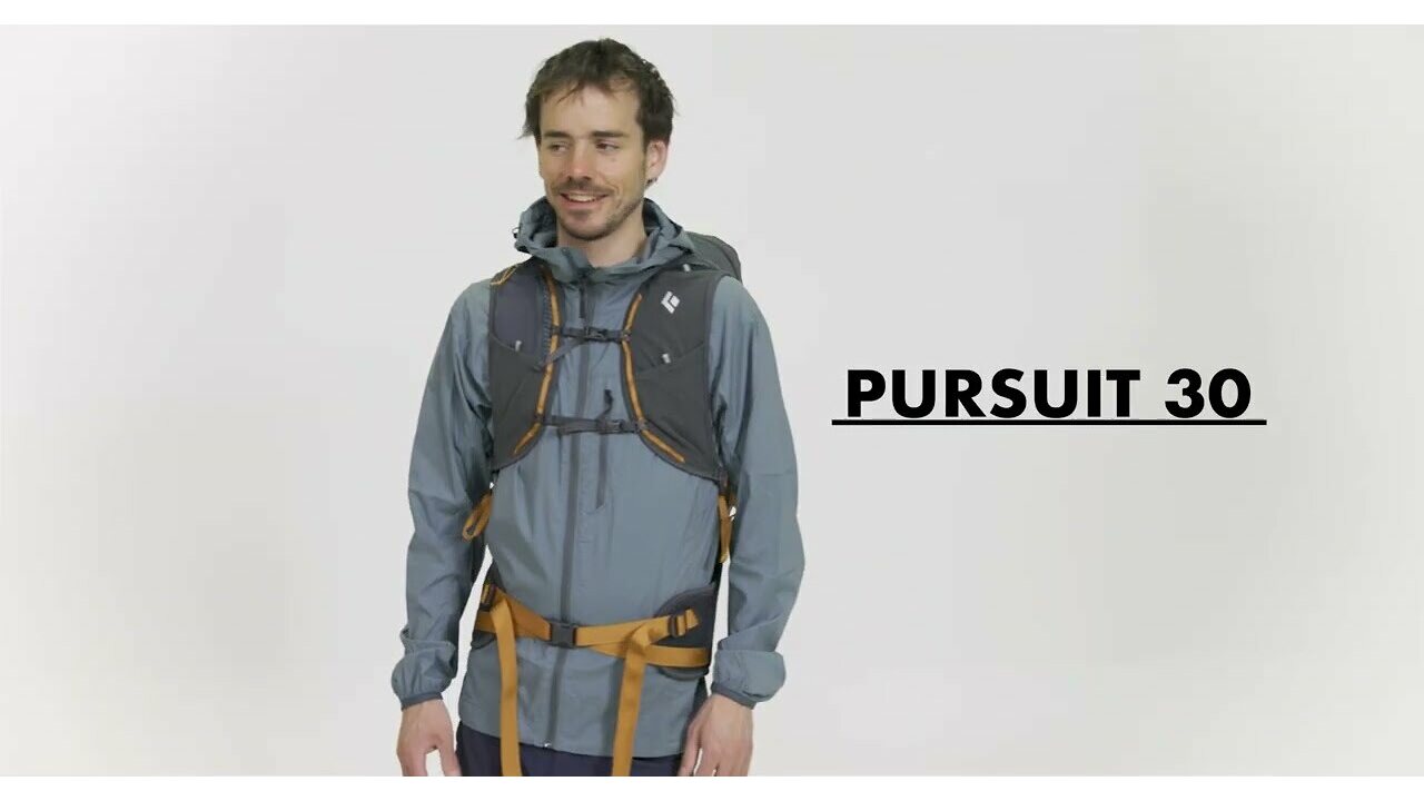 Bagging more than one summit in a day? The Black Diamond Pursuit 30 Pack will keep you moving light and fast, peak after peak. With a harness design inspired by the Black Diamond Distance series, the Pursuit Daypacks are built with a custom “BD Continuous Fit Harness” with a seamless “wing” body construction that contours to the body for maximum comfort on the move. The quick pull compression system adjusts depending on your load. With quick access side pockets and easy access trekking pole storage, snacking and stashing is easy on the move. Pursuit Daypacks are made from 100% recycled body fabrics with a breathable back panel. The pack includes an external hydration storage pocket.