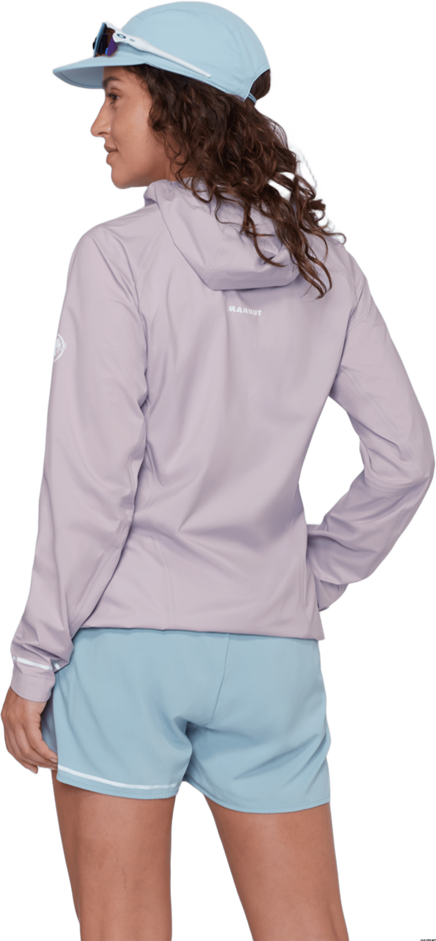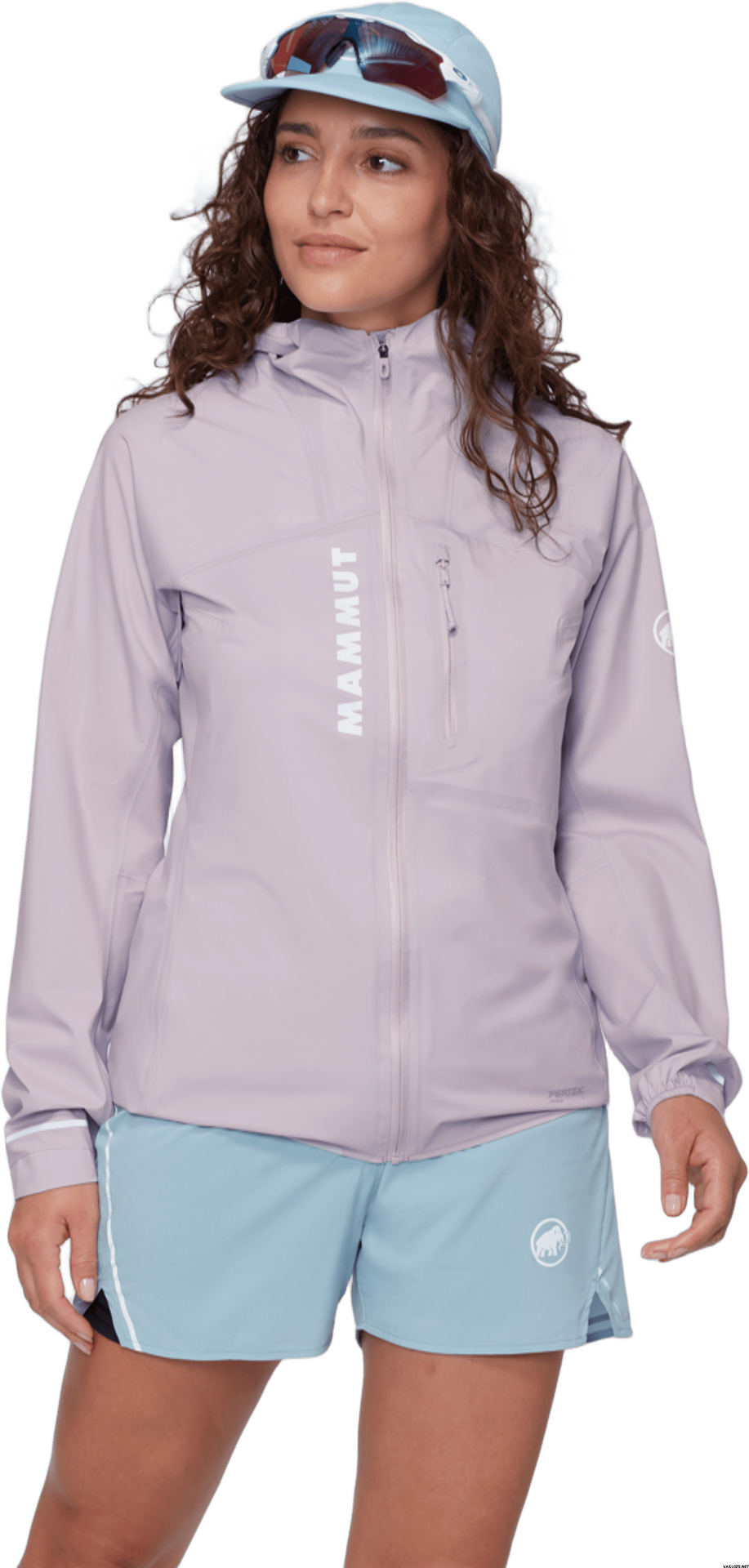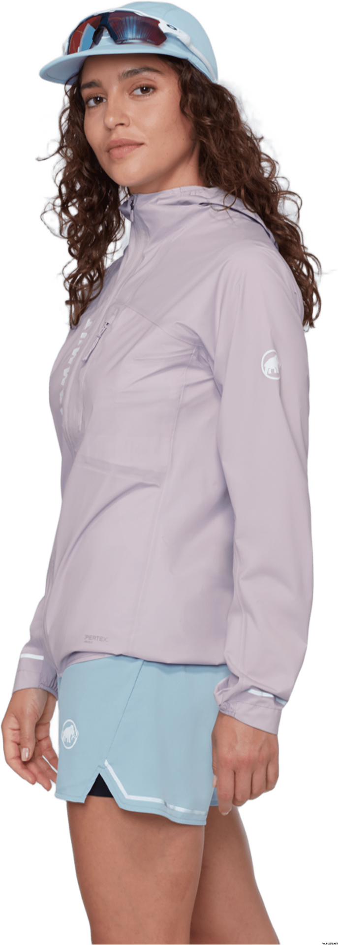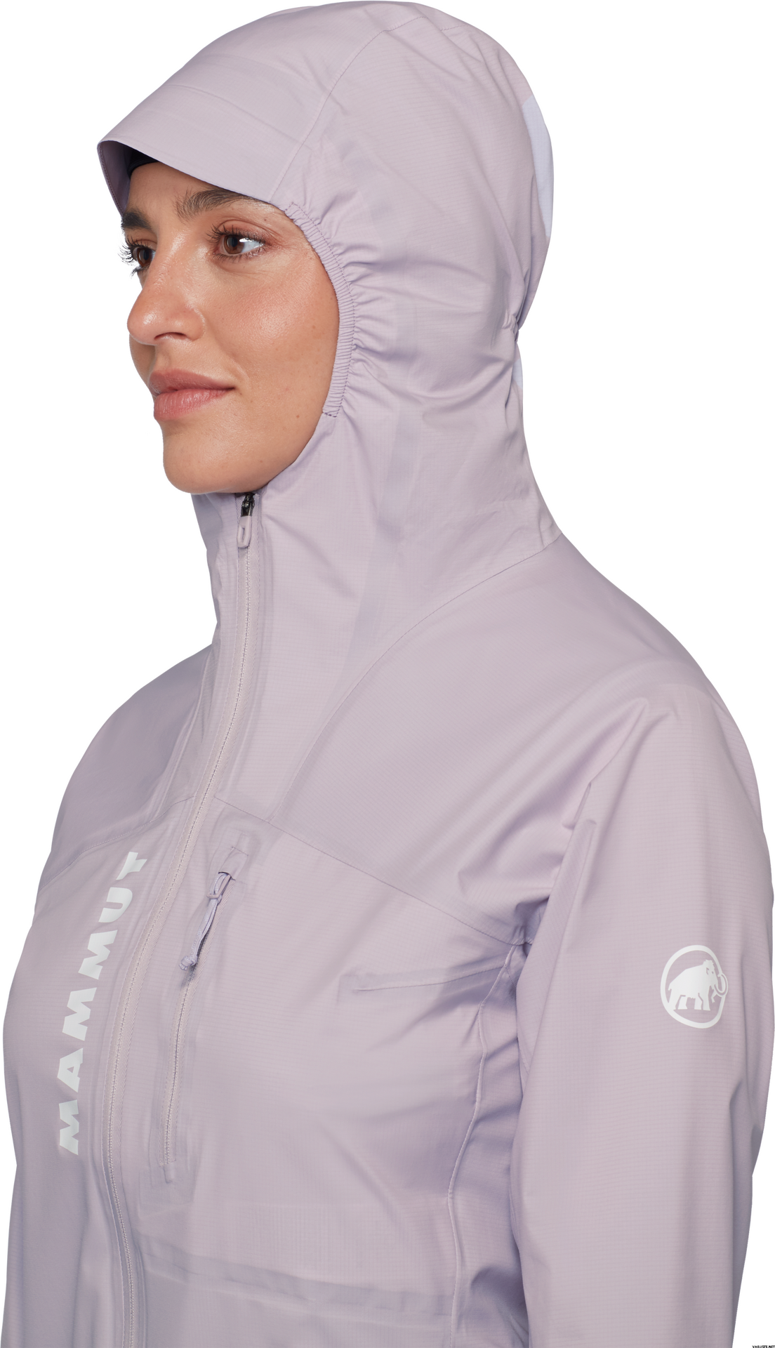 Ultra-light waterproof packable 3-layer hardshell jacket from Mammut for women. Designed for fast-paced activities like trail running, this featherweight champion is fully wind- and waterproof and breathes even heavier than you do on those tough alpine sprints. With minimal seams, a dash of reflectivity, and a snug-fitting, pre-adjusted hood that won’t hinder your view, this is one piece of gear you won’t be leaving home without.