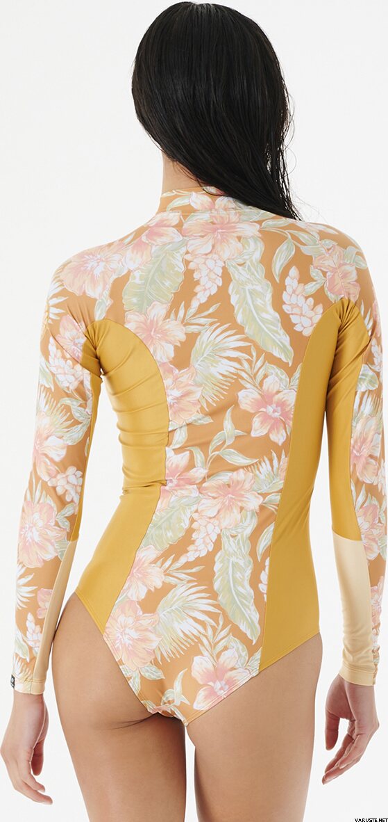 The Always Summer UPF50+ Long Sleeve Surf Suit is a bright and fun one piece rash vest. Made with sustainability in mind from Creora Highclo recycled nylon in a performance fit with contour panelling for reduced drag and increased ease in the water. This epic swimsuit rash guard is also fitted with a secure five gauge zip at front, with a chlorine friendly composition you can enjoy it at the wave pool or in the ocean and with a UPF 50+ sun protection factor now you can spend more time doing what you love... Livin' The Search!