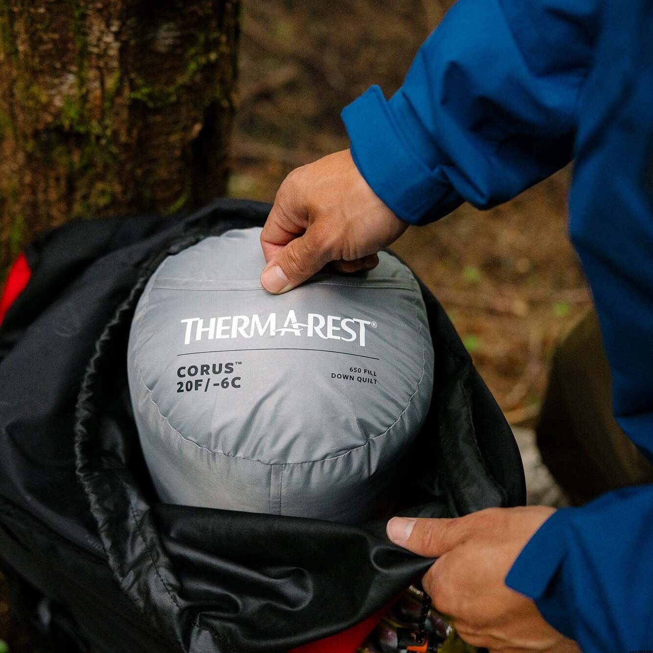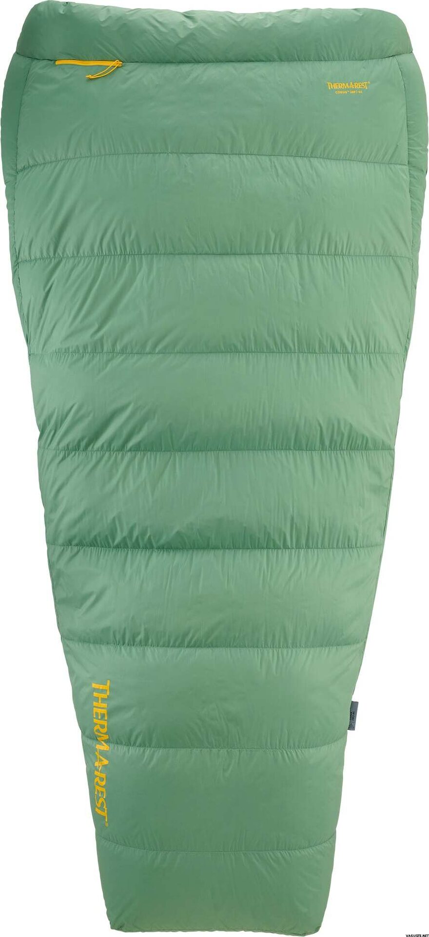 The Therm-a-Rest Corus 20F/-6C quilt offers a perfect blend of lightweight design and warmth, making it an excellent choice for three-season backcountry trips or as part of a layering system in colder weather. Crafted with hydrophobic down and box baffled construction, it ensures optimal temperature regulation and freedom of movement, similar to your home comforter. The footbox is designed to fit over your sleeping pad to prevent drafts or over your feet for added warmth, while a snap closure at the neck keeps the quilt secure on chilly nights.