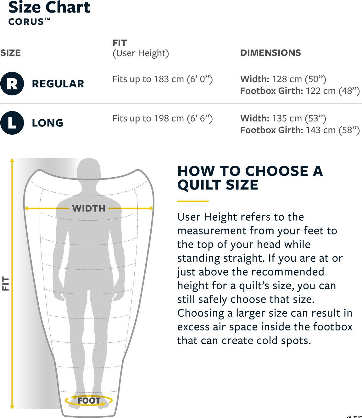 Fits user height: Regular: 183 cm (72 in), Long: 198 cm (78 in)