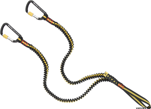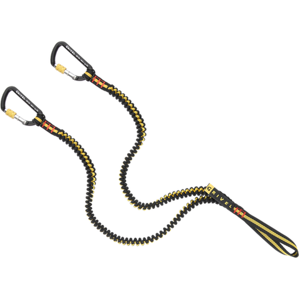 Double elastic ice axe leash from Grivel created to not lose your tools during their use. It has two carabiners to be attached to the tools. It can be fixed to the harness with a cow hitch on the ring.