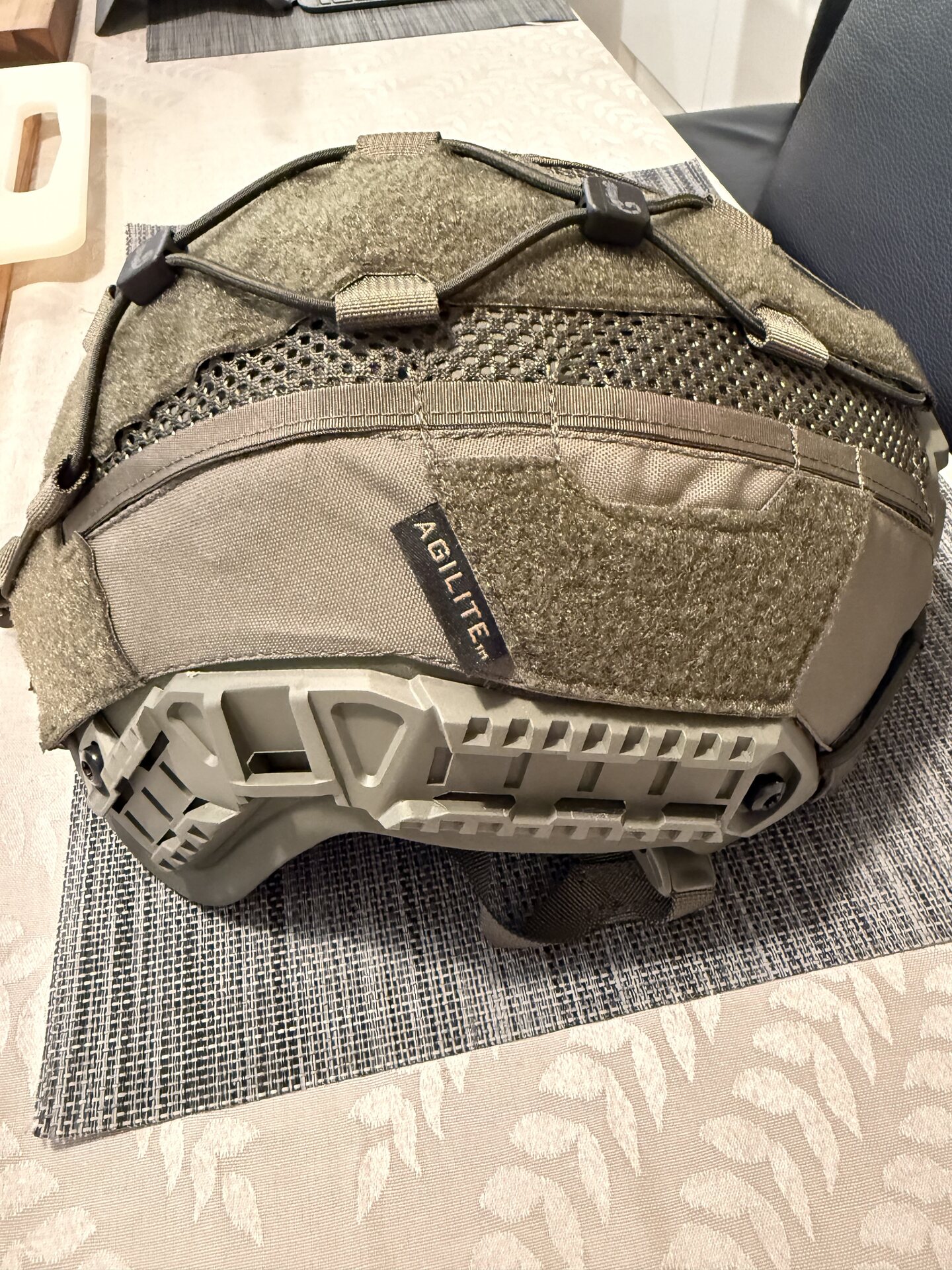 The Agilite Ops-Core Maritime/Fast SF Super High Cut Helmet Cover-Gen4 is designed to provide a precise fit for the Ops Core FAST SF and Ops Core FAST MT helmets. This cover enhances the helmet's functionality with its integrated cable management channels and a low-profile central bungee retention system, ideal for securing IR strobes and cameras. Made from durable 1000D tactical nylon and flat polyester mesh, it ensures long-lasting performance in demanding conditions. Note that this product includes only the helmet cover; the rear pouch for battery packs or counterweights is sold separately.