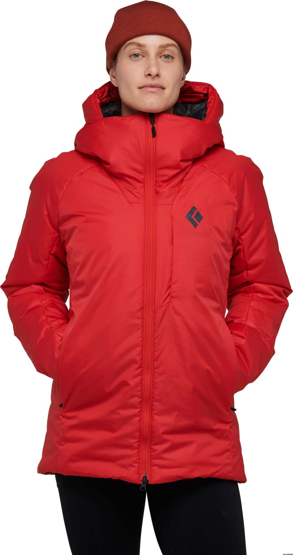 The Women's Black Diamond Belay Parka stands as an essential companion for braving harsh winter conditions, including exposed bivouacs and cold alpine terrains. Redesigned and enhanced for 2023, it's engineered to endure and protect against challenging weather, making it a reliable choice for climbers facing extreme situations or needing to retreat during a climb.