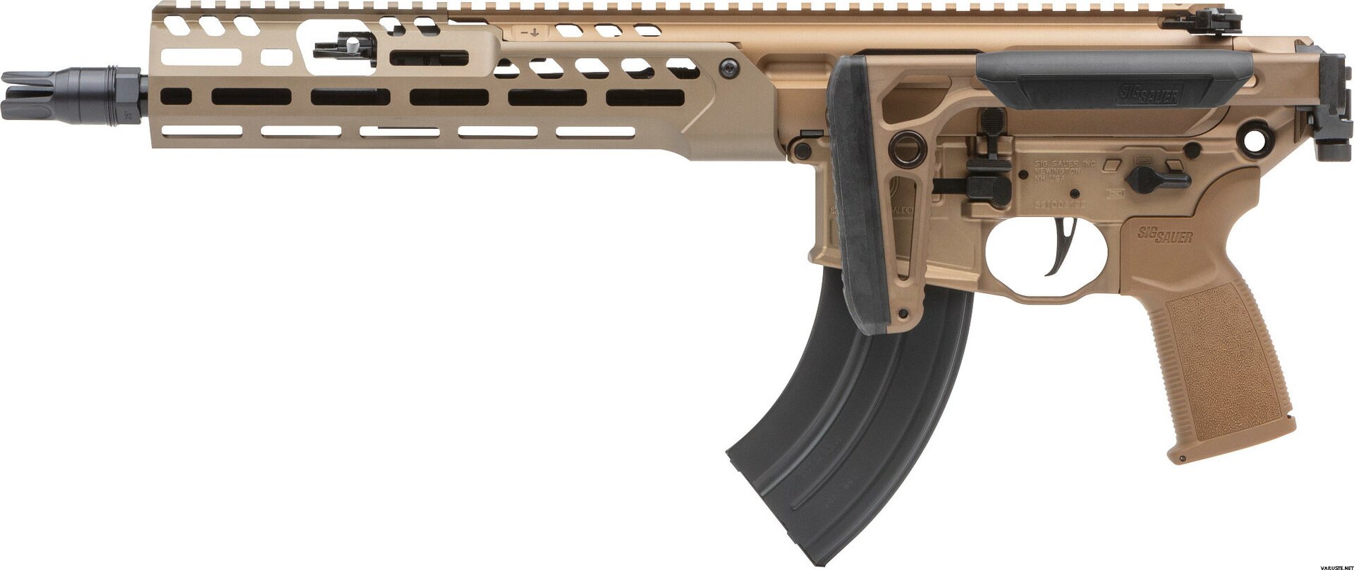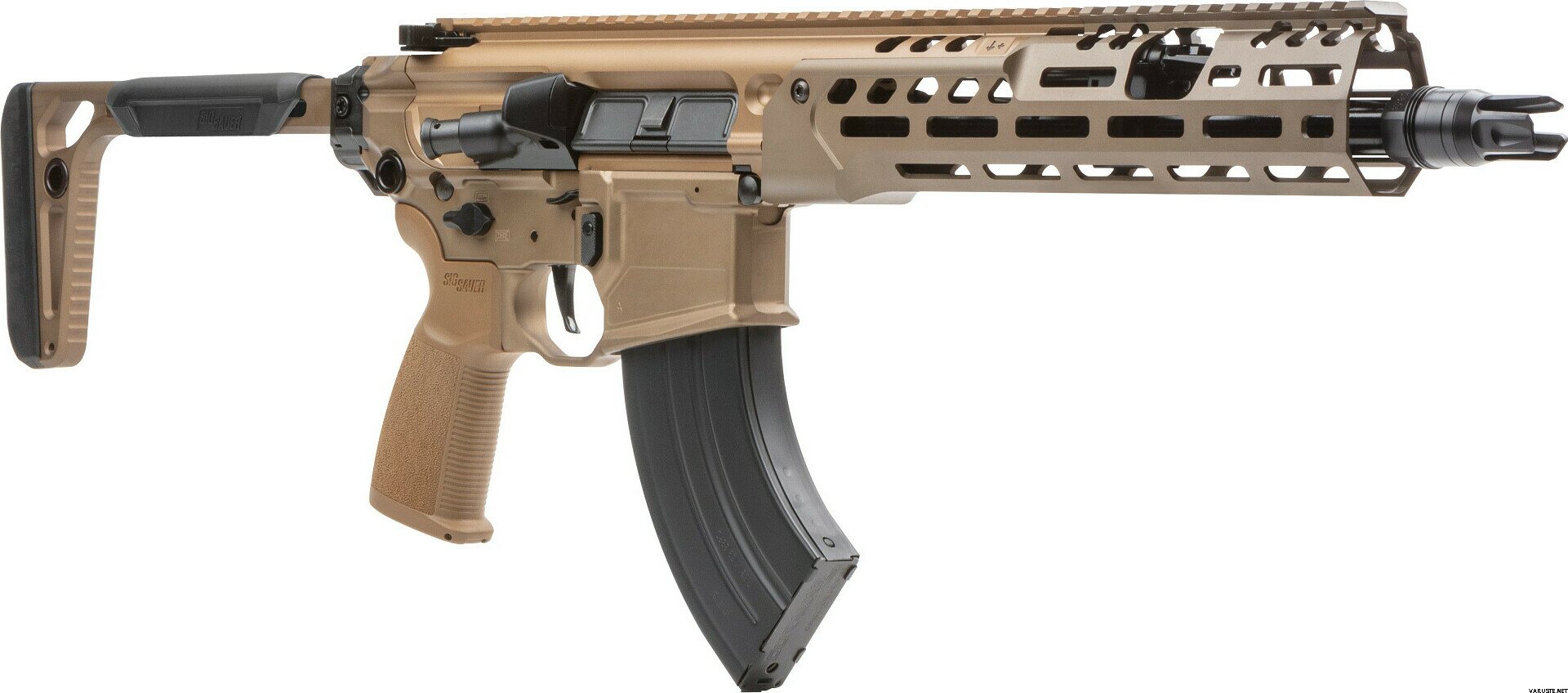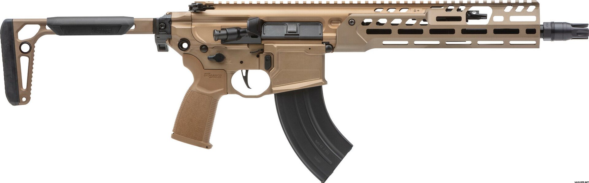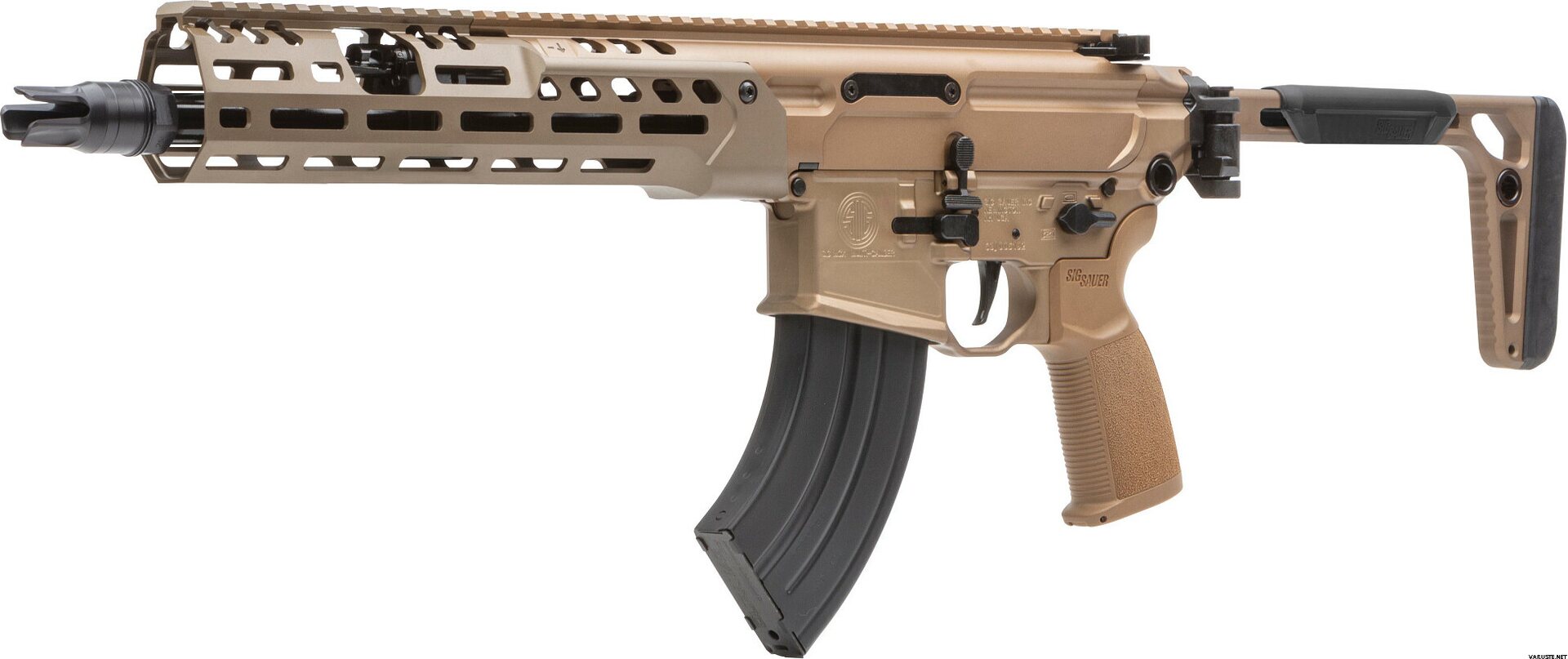 Product descriptionThe MCX platform has long been SIG SAUER’S breeding ground for developing the best rifle system in the world through extensive testing, continued innovation and customer feedback. Now SIG SAUER introduces the latest evolution with the new MCX-SPEAR LT, based on its predecessor the MCX Virtus the new MCX-SPEAR LT has a lightened handguard with attachment screws for additional rigidity and a lightened profile barrel with improved accuracy. Other features of the MCX-SPEAR LT include an ambidextrous bolt catch and release on its lower, coyote anodized finish, minimalist stock for maximum compact foldability and AR15 style trigger compatibility. And the new MCX-SPEAR LT brings the long awaited addition of the 7.62x39 caliber to the MCX family. Developed with a new latch system the 7.62x39 MCX-SPEAR LT was developed to handle the many varieties of 7.62 caliber ammunition while still maintaining reliability and smooth shooting. The New MCX-SPEAR LT, has once again set the bar for modular weapons technology.