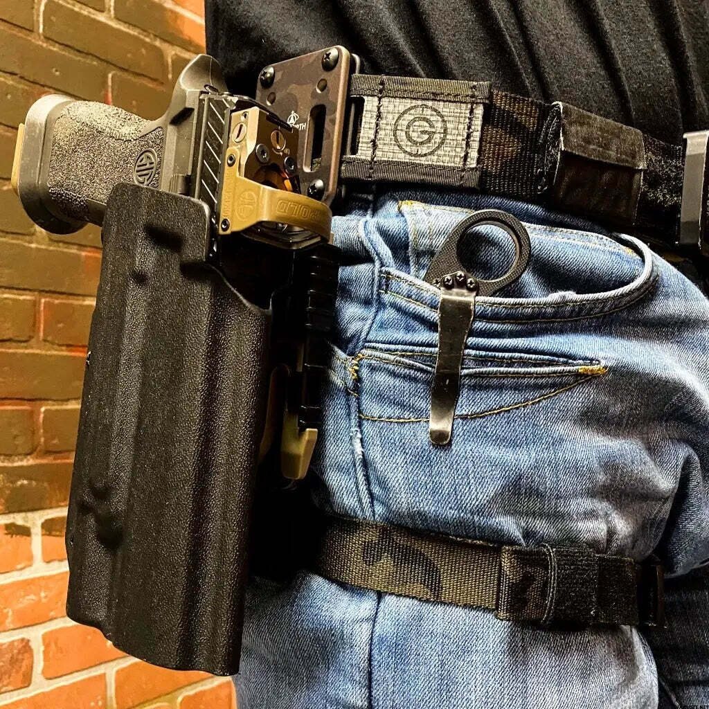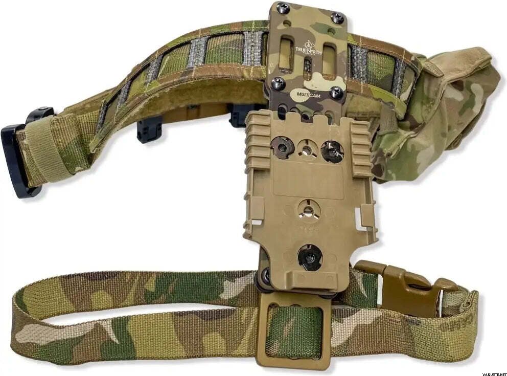 The Modular Holster Adapter Leg Strap Kit includes everything necessary to outfit your MHA with a thigh strap. Leg straps first saw widespread use with early American open-top, western-style holsters during the later 1800s and continued to gain popularity during the 20th century. These early straps usually took the form of a simple leather or cord tie-down, and eventually evolved into the wider webbing type straps popularized by the British SAS holsters developed during the 1970s. The remaining two decades of the twentieth century witnessed marginal improvements and design variations of tactical holsters, as militaries reluctantly abandoned antiqued leather designs. Leg strap conversions for the US military-issued UM-84/M12 holsters appeared sometime during the late 1980’s/early 1990s, and the commercial market began to introduce nylon drop leg holsters utilizing two leg straps. During the early years of the GWOT, nearly every drop leg holster on the battlefield featured two leg straps, with many shooters choosing to remove the top strap completely due to chaffing and comfort issues. Today, the majority of America's top shooters choose to run a mid-ride level of drop for their holster, just slightly below the belt line. This has been found to be the ideal location for the pistol to clear body armor and vest-mounted pouches. Although some shooters have turned away from leg straps completely, there are still many that prefer the added stability and reduced movement of their holster by utilizing a leg strap.