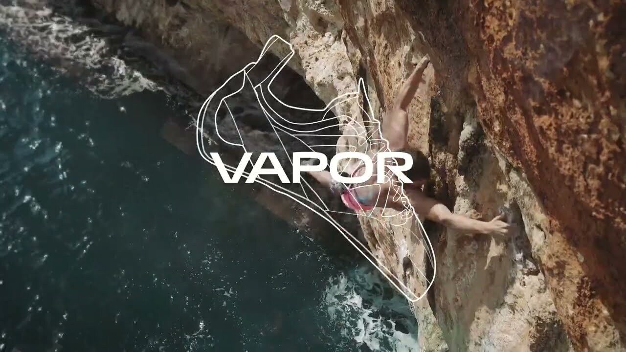 The Scarpa Vapor shoe is a technical and high-performance climbing shoe designed for rock and mountain climbing, catering to both wall and crack climbing. The shoe minimizes seams to enhance comfort and reduce uncomfortable pressure points while providing a precise fit through its Bi-Tension feature. Its rigid construction allows for excellent precision, and the full-length outsole provides arch support, making it well-suited for technical climbing. Additionally, the PAF heel design not only enhances the shoe's fit but also assists in addressing heel spurs.