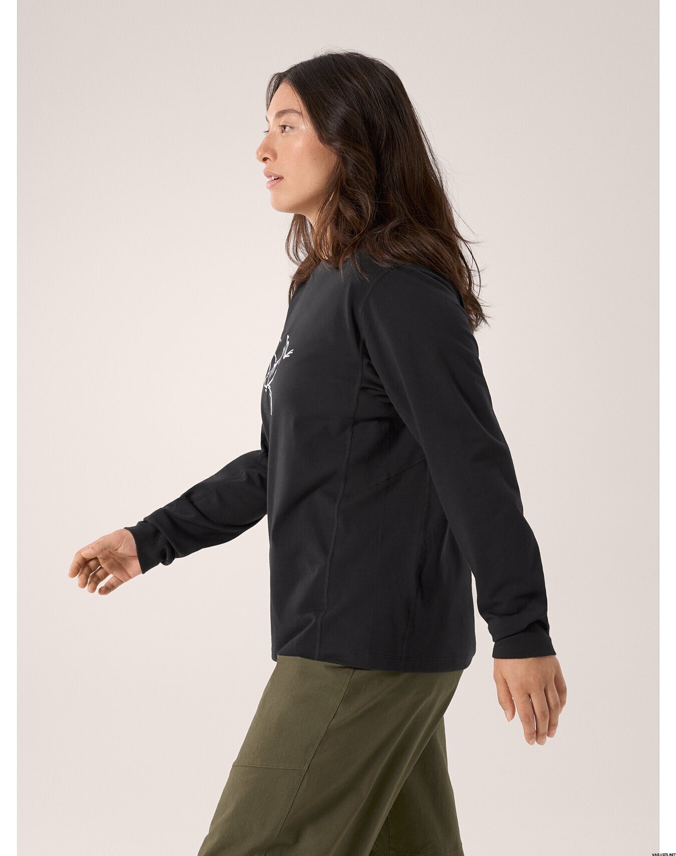 The Arc'teryx Archaeopteryx Logo Long Sleeve Womens shirt stands out with its iconic bird logo, making it a versatile graphic tee for everyday wear. Crafted from a blend of soft, durable organically grown cotton and performance polyester fibers, this 240gsm fabric is ideal for cooler seasons like fall and winter. The gusseted underarms and slight stretch provide excellent freedom of movement, ensuring comfort throughout the day.