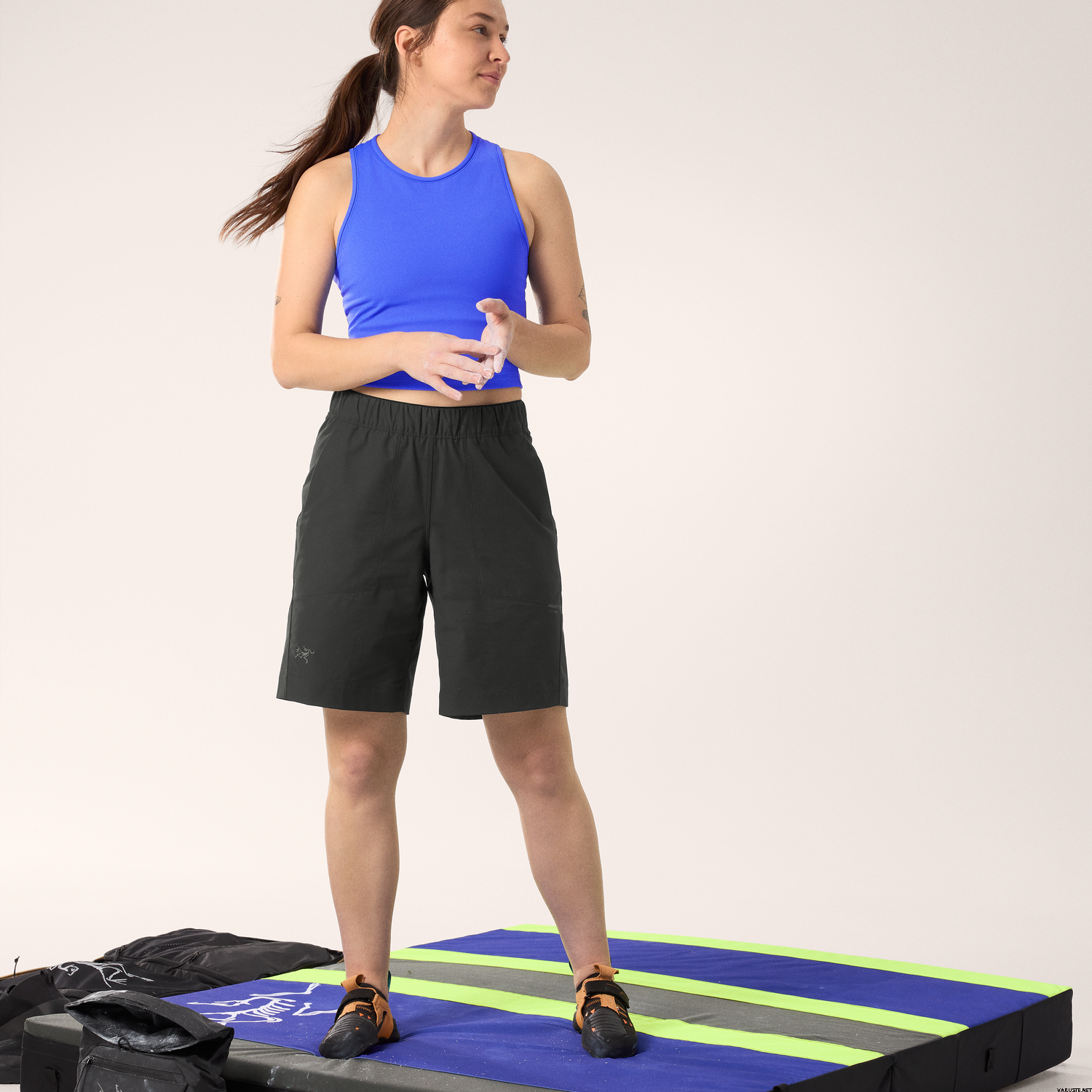 The Arc'teryx Kragg Cotton Short 9" Womens is a versatile climber's short designed for gym sessions, bouldering, crag adventures, and multipitch climbs. Crafted from a durable blend of cotton and nylon, these shorts offer a four-way stretch for enhanced mobility and comfort. The FC0 DWR finish ensures moisture resistance, making them suitable for various outdoor conditions.