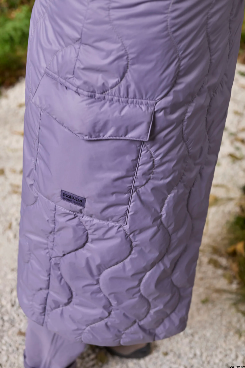 The MoskenesM. Alpine Puffer Skirt offers exceptional thermal insulation in a lightweight design, perfect for active people. This padded skirt features a fully open front secured by a waistband buckle, ensuring warmth and unrestricted movement, especially for skating. Crafted with windproof and breathable materials, it includes Primaloft BIO padding and a durable water- and dirt-repellent finish. The MoskenesM. combines style with functionality, making it a standout choice both on and off the tracks. The Bluesign product label ensures responsible resource use and safe production processes.