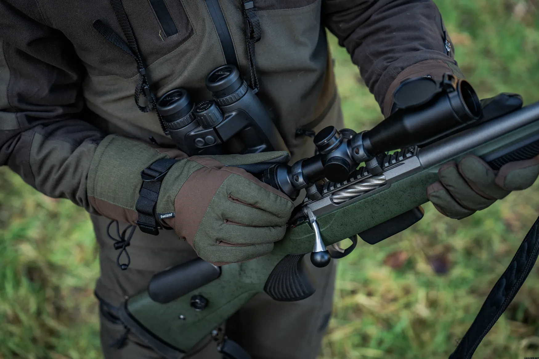 Seeland Celsius Heat Gloves are essential battery heated gloves for cold-weather hunting. These gloves incorporate Thinsulate insulation, a protective membrane, and advanced graphene heat panels to deliver warmth precisely to each finger and the back of the hand. Designed for convenience, they feature one-handed adjustable wrist and hand openings, allowing for easy adjustments even while wearing them. The anti-slip palm ensures a secure grip, while three heat levels can be controlled via a button with color indicators, providing comfort and dexterity in chilly conditions. Each pair comes with two 5000 mAh power banks, offering up to 6 hours of heat to keep your hands warm and ready for action.