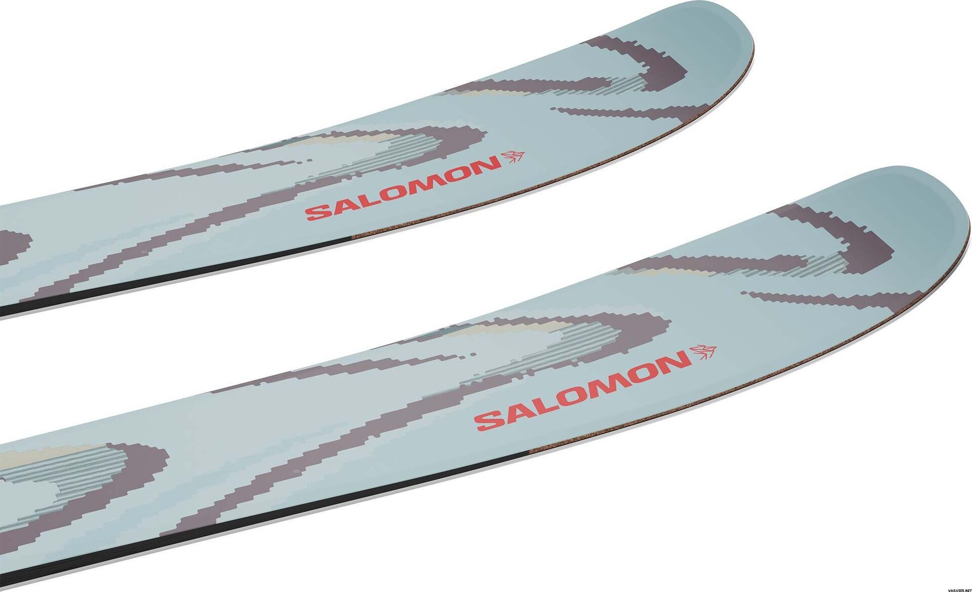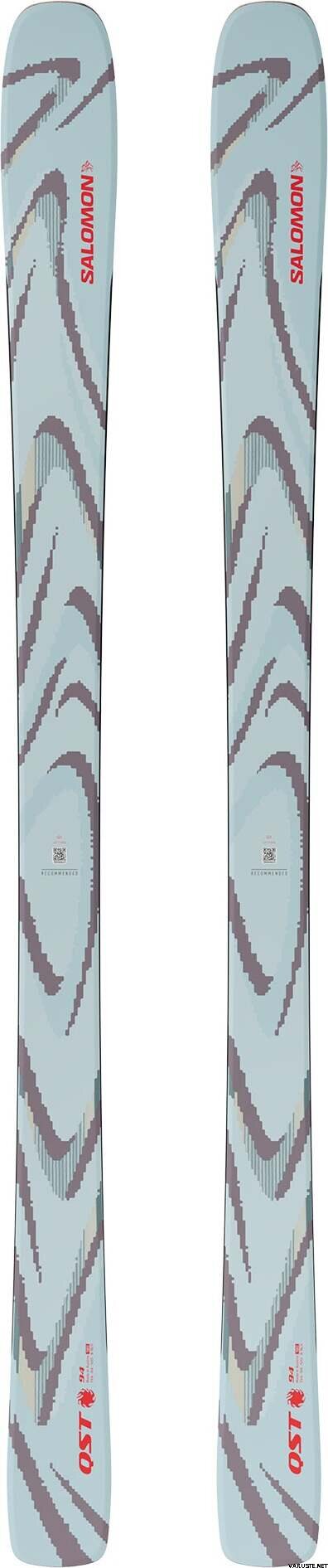 Salomon QST 94 Iced Aqua skis are designed for those who enjoy both all-mountain and freeride experiences. These unisex freeride skis feature a wide tip and a 94 mm waist, providing excellent grip and stability on groomed runs while offering enhanced floatation in softer snow. Ideal for intermediate skiers, they deliver a balanced performance across various snow conditions.