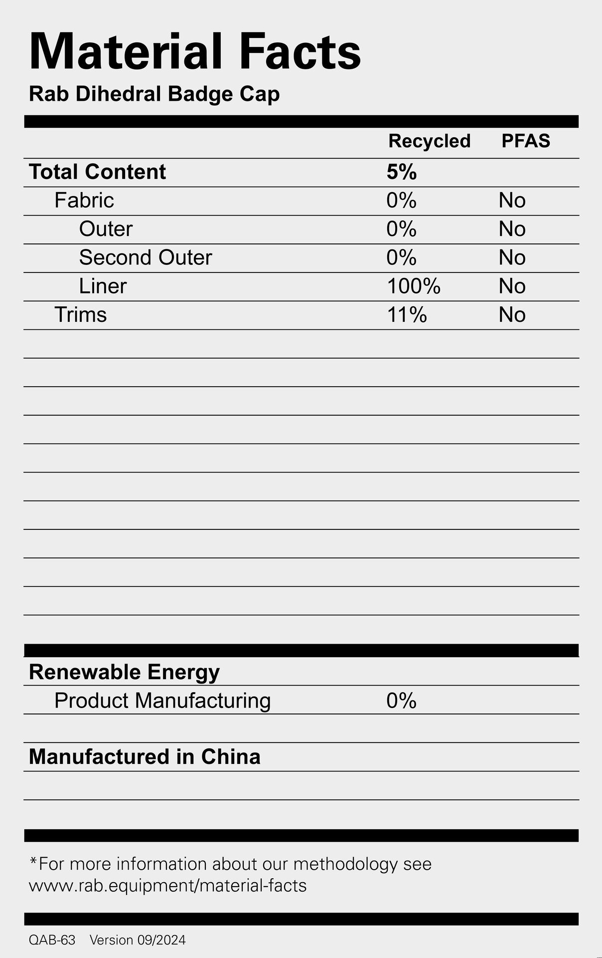 Rab Dihedral Badge Cap is a breathable, trail-ready cap with a standout front badge for sunny mountain days and everyday use. This cap pairs a classic baseball silhouette with a curved peak for comfortable coverage. The ventilated mesh back helps air circulate when the pace picks up, whether on a hike, at the crag, or around town.