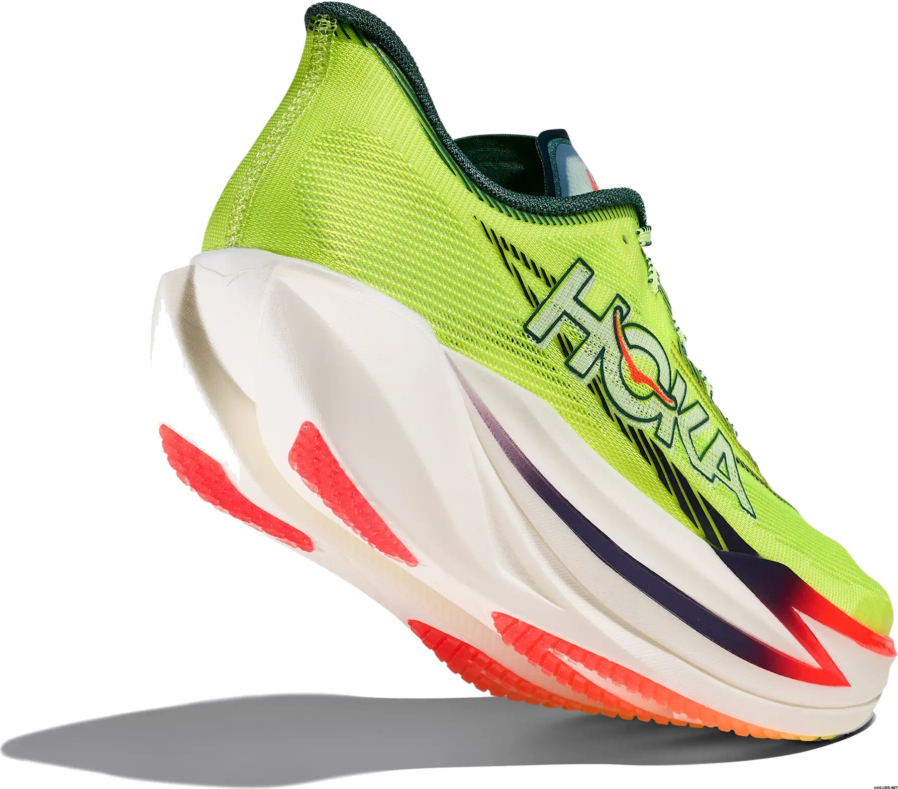 The Hoka Cielo X1 3.0 Unisex is crafted for those who crave speed and efficiency on race day. As the lightest super shoe in Hoka's lineup, it offers a dynamic ride with its ultra-lightweight design and responsive features. This racing shoe is equipped with a propulsive carbon fiber plate and ultrasoft PEBA foam, ensuring a snappy and energetic performance. The asymmetrical lacing and grippy outsole provide a secure fit and excellent traction, making it a top choice for athletes aiming to break personal records.