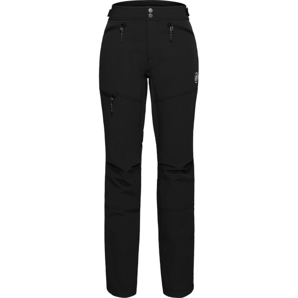 Mammut Taiss SO Pants Womens are durable softshell mountaineering pants designed for challenging climbs and icy terrains. These women's climbing pants are crafted from 92% recycled polyamide, offering exceptional abrasion resistance against rocks and ice. The Mammut Flexguard technology ensures 4-way stretch, providing unrestricted movement during demanding activities. With a wind-repellent and breathable membrane, combined with a water-repellent treatment, these pants offer lightweight protection against the elements. An adjustable waistband and drawstring hems enhance comfort and fit, while zippered pockets keep essentials accessible. The Taiss SO Pants are an excellent choice for year-round mountaineering.